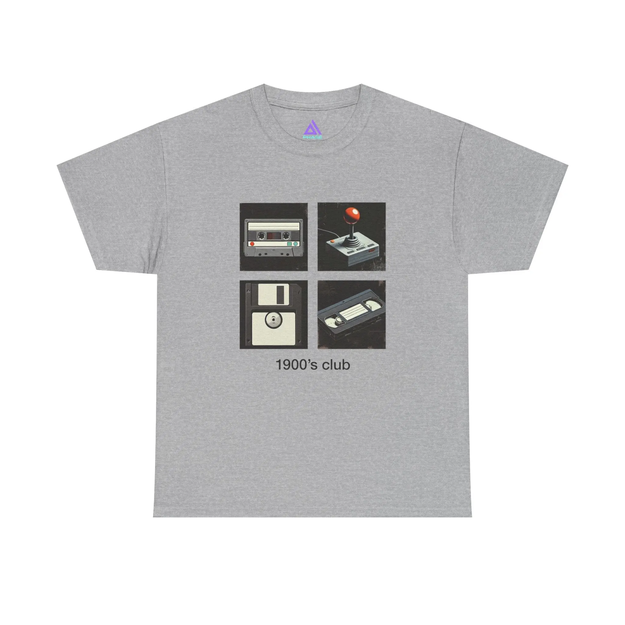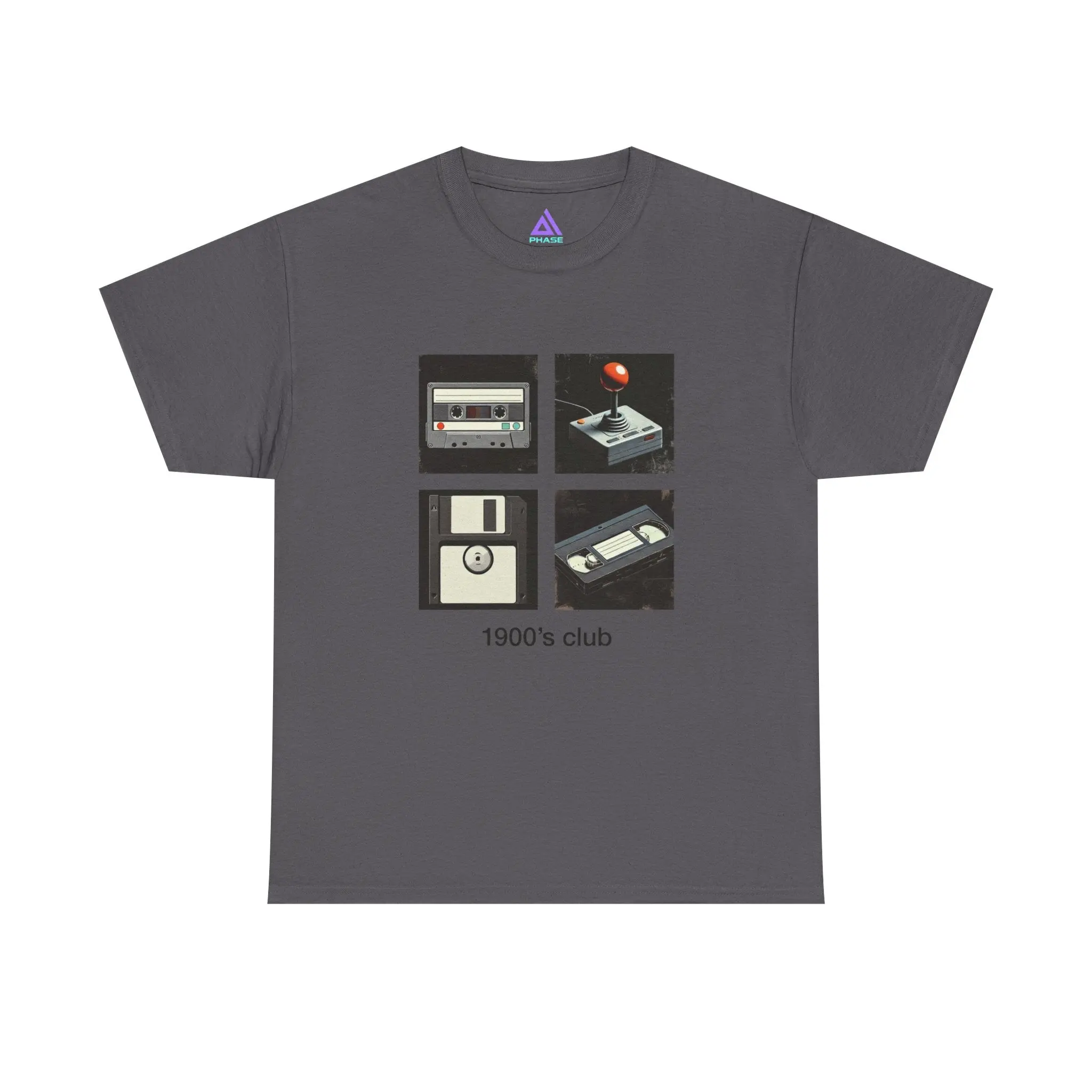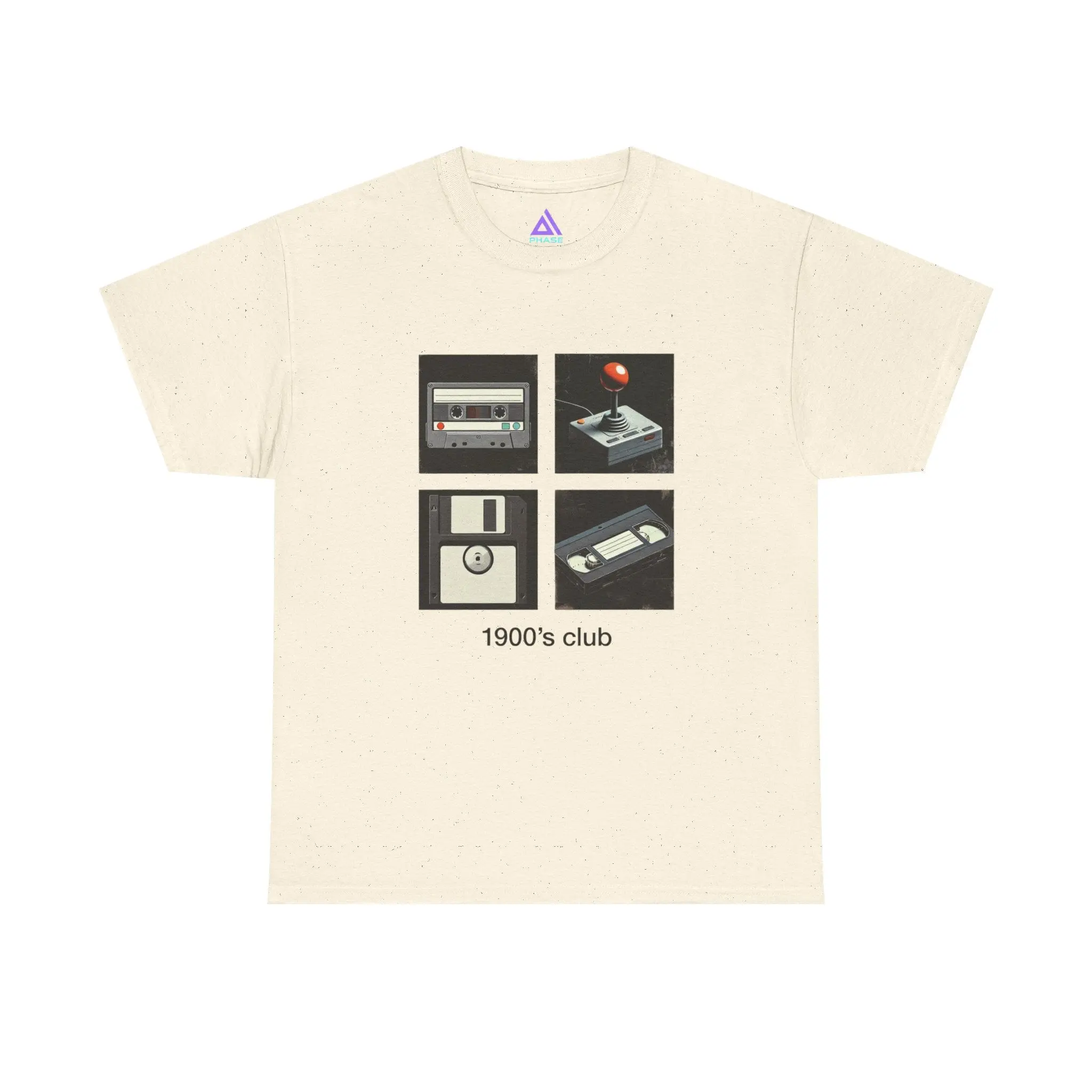A soft, breathable cotton tee that celebrates retro tech with low-key nostalgia. Four vintage icons—cassette, joystick, floppy disk and film strip—sit in a neat grid on a clean white field, paired with the understated caption “1900’s club.” It’s a relaxed, everyday tee that wears like an old favorite: comfortable, durable, and subtly clever. Wear it to a vintage-game night, record-store browse, or when you want to flash a quiet nod to analog days without shouting. The medium-weight cotton holds print detail well, and the tear-away label plus reinforced collar keep it comfortable through many washes.