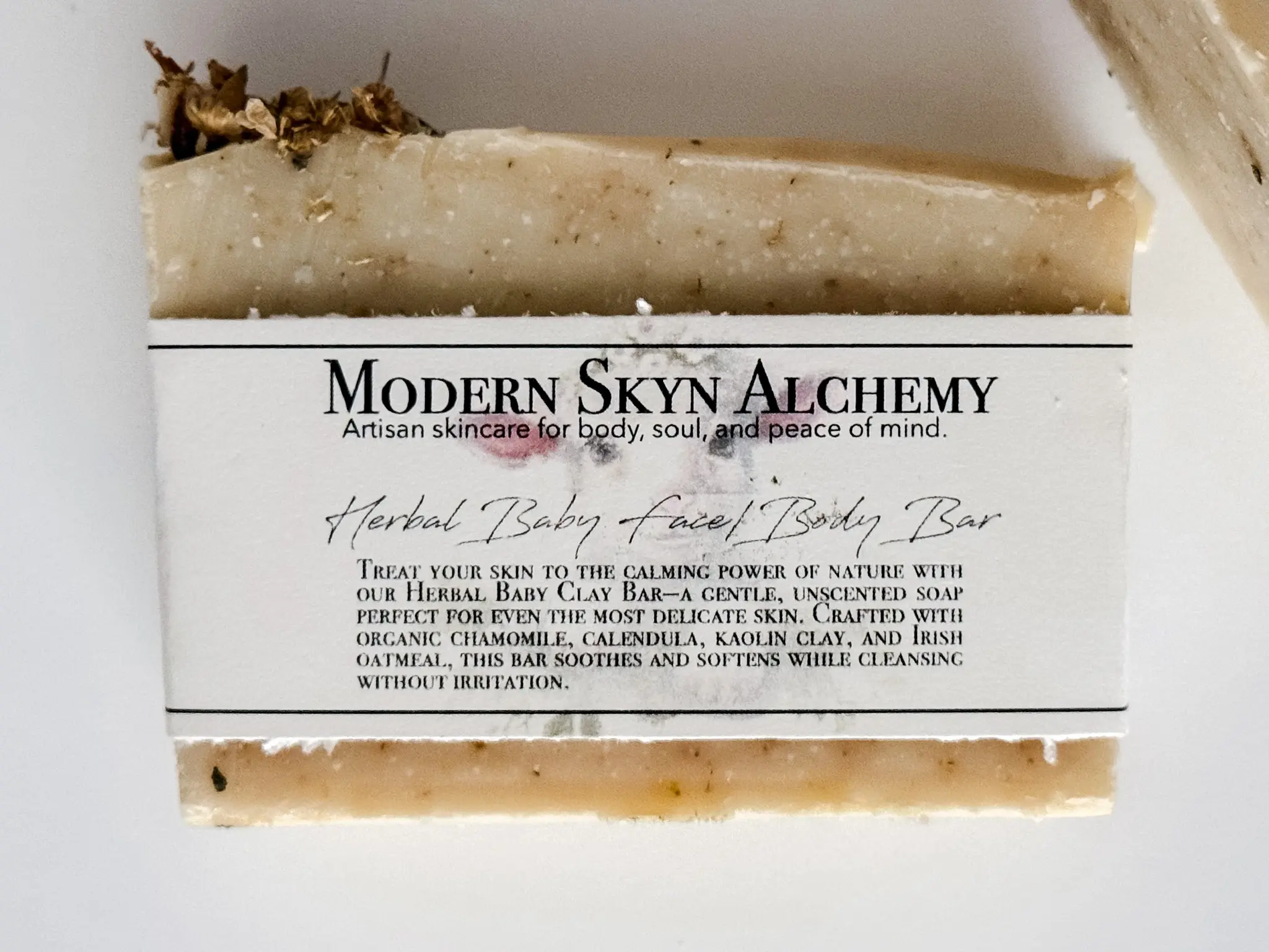 Wrap skin in the quiet comfort of nature with our Herbal Baby Clay Bar—an exceptionally mild, unscented cleansing bar thoughtfully crafted for the most delicate skin. Gentle enough for baby’s bath time, yet deeply nourishing for adults with sensitive, reactive, or eczema-prone skin.