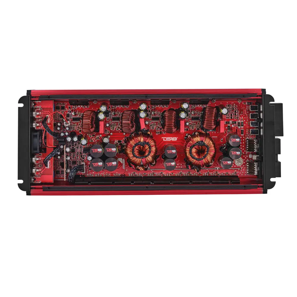 Experience massive, crystal-clear power with the DS18 FRP-4K4 Compact 4-Channel Amplifier – 4000W RMS, adjustable crossovers, bass boost, and smart protection for pro-level car audio performance.