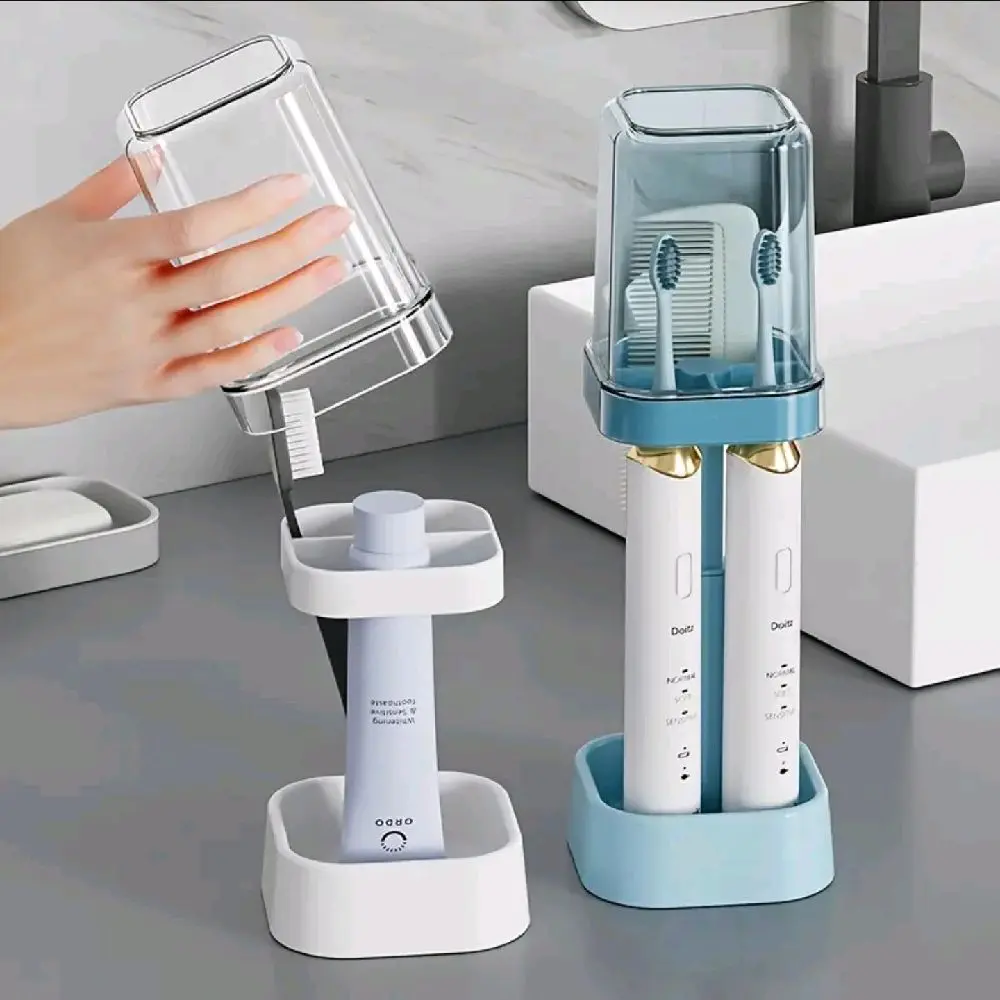 3-Slot Toothbrush Holder with Lid Multicolor Glass Finish Includes Cup Storage & Razor Organizer High Temperature Resistance Bathroom Accessory for Shaving & Shower Essentials 1pc