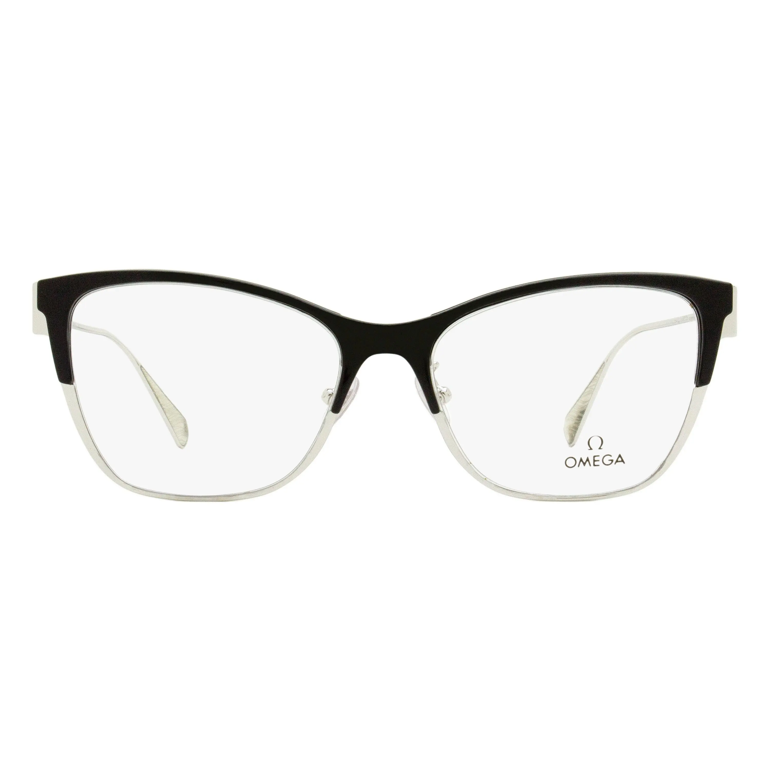 The Omega OM5001 optical frames feature a rectangular Butterfly shape suitable for women. The metal frame front is accented with acetate details on the upper portion and laser etching on the inner temples. Inspired by the design of its highly sought after watches, the OMEGA eyewear collection is characterized by precision craftmanship and exceptional materials. Using classic shapes and contemporary motifs OMEGA’s legendary attention to detail is a hallmark of this collection. Please note these eyeglasses are provided with Demo Lenses in order to demonstrate the final appearance of your frames. Please visit your local Optometrist or Optician to replace with optical quality lenses.