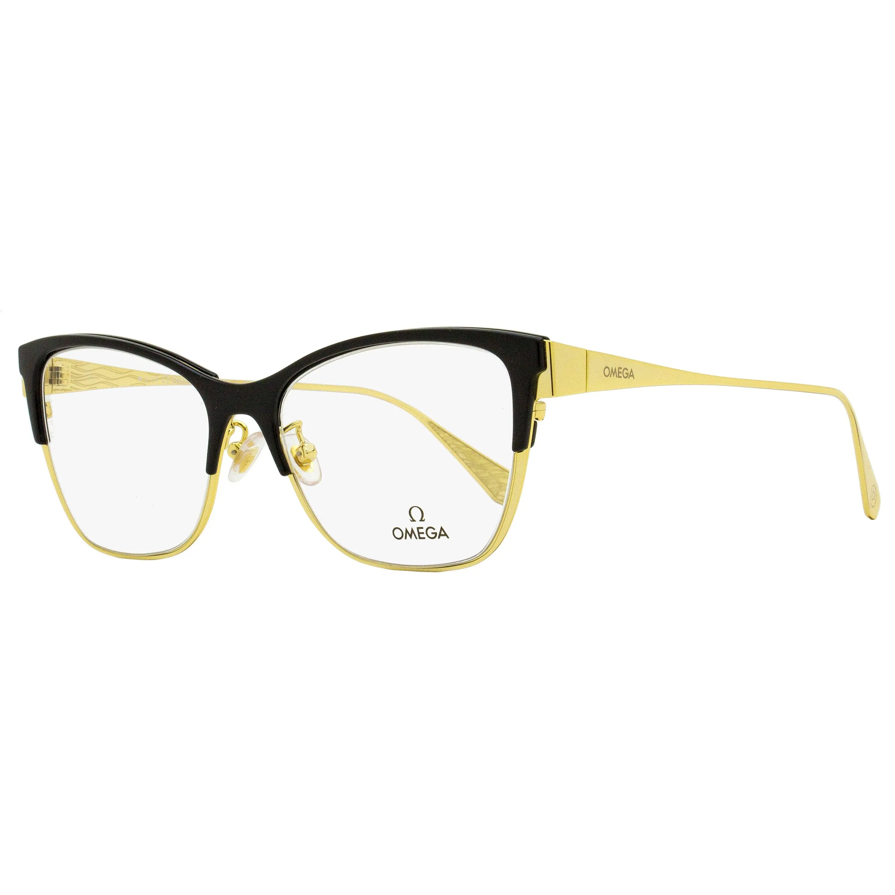 The Omega OM5001 optical frames feature a rectangular Butterfly shape suitable for women. The metal frame front is accented with acetate details on the upper portion and laser etching on the inner temples. Inspired by the design of its highly sought after watches, the OMEGA eyewear collection is characterized by precision craftmanship and exceptional materials. Using classic shapes and contemporary motifs OMEGA’s legendary attention to detail is a hallmark of this collection. Please note these eyeglasses are provided with Demo Lenses in order to demonstrate the final appearance of your frames. Please visit your local Optometrist or Optician to replace with optical quality lenses.