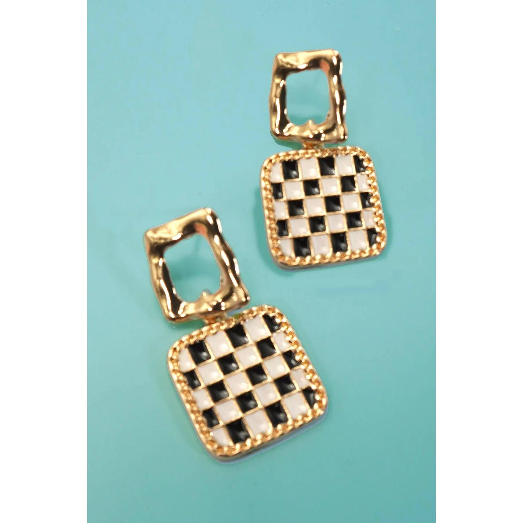 Double Square Checker Drop Earrings are a bold and trendy statement piece that adds a modern edge to your look. Featuring two stacked square charms with a vibrant checker pattern, these drop earrings bring a playful pop of color and geometric flair. Lightweight yet eye-catching.