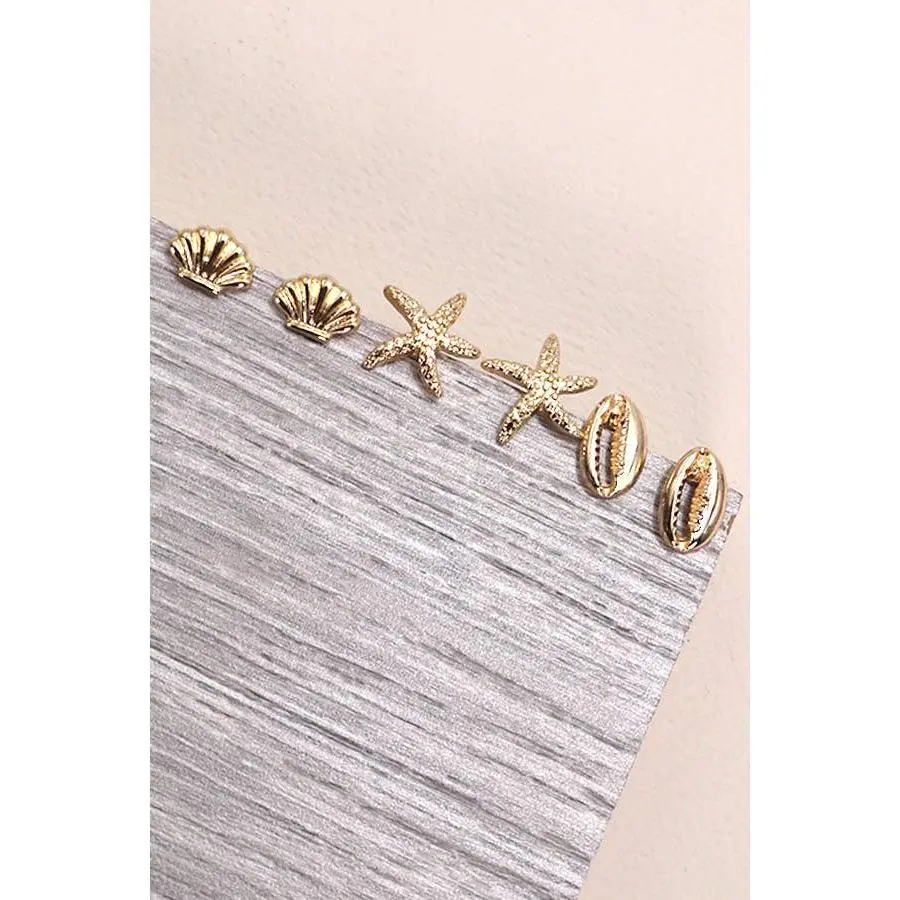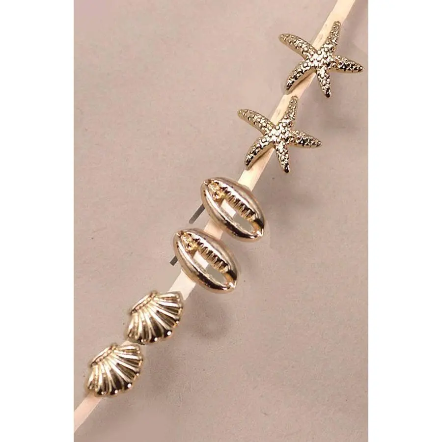 Trio Stud Seashell Earrings, these earrings feature a trio of intricately designed seashell studs, each adorned with a unique and elegant motif. The trio design offers versatility, allowing you to mix and match or wear them individually, these seashell earrings bring a touch of sea ocean beach coastal charm to any ensemble, making them perfect for both casual and special occasions.