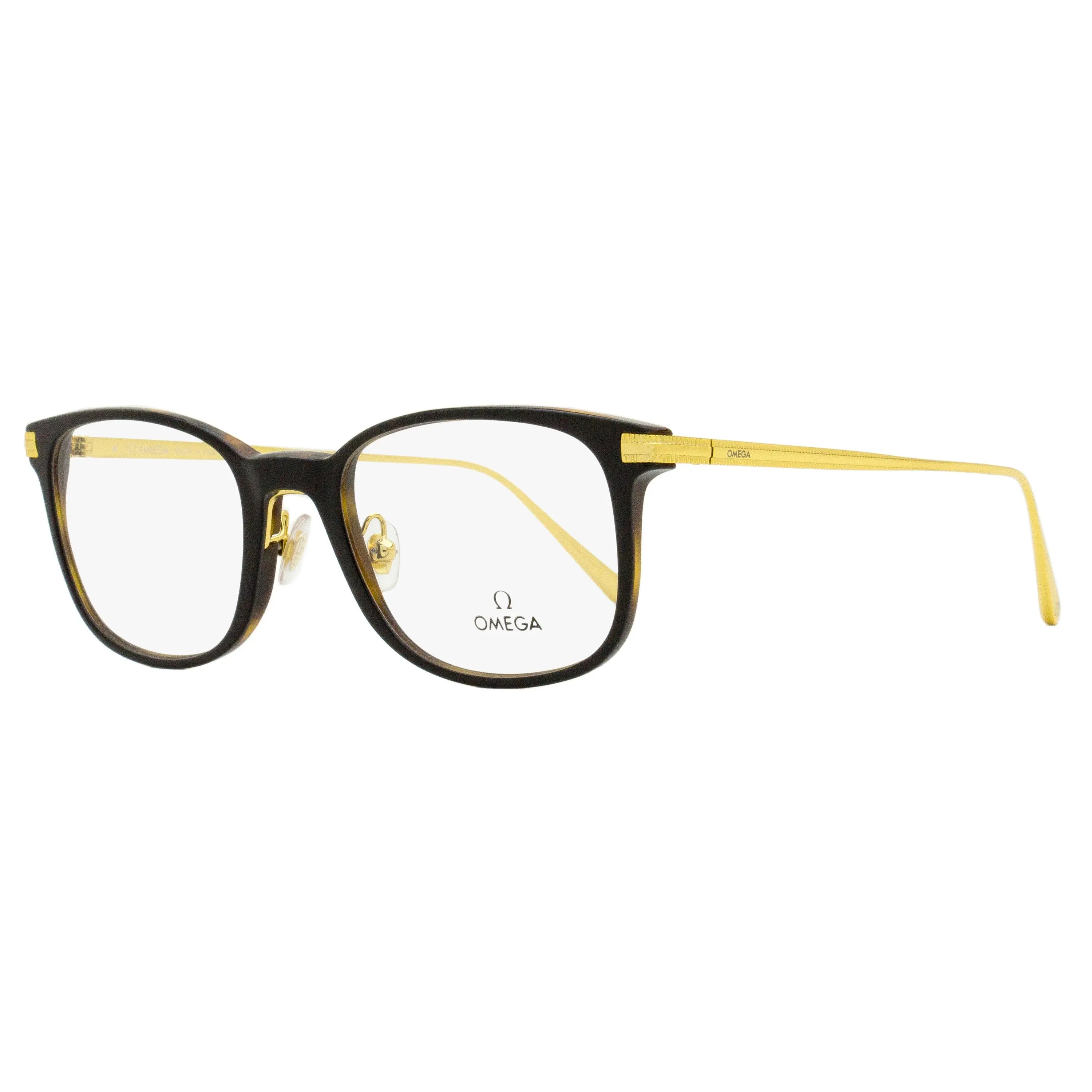 The Omega OM5039 optical frames feature a soft rectangular shape with adjustable nose pads suitable for men. The acetate frame front is accented with metal temples that have their edges finished with customized milling and are accented with subtle branding. Inspired by the design of its highly sought after watches, the OMEGA eyewear collection is characterized by precision craftmanship and exceptional materials. Using classic shapes and contemporary motifs OMEGA’s legendary attention to detail is a hallmark of this collection. Please note these eyeglasses are provided with Demo Lenses in order to demonstrate the final appearance of your frames. Please visit your local Optometrist or Optician to replace with optical quality lenses.