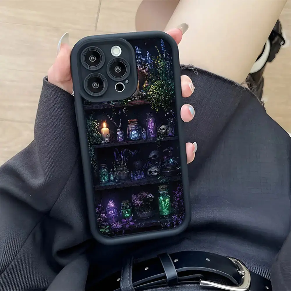 Phone Case - A Stylish TPU Phone Cover Featuring a Witch-Themed Bookshelf Design, Designed to Be Shockproof And Resistant to Drops, Compatible with for iPhone 17 E Air Pro ProMax iPhone16 15 14 Plus 13 12 Mini 11 X XS XR, for Halloween