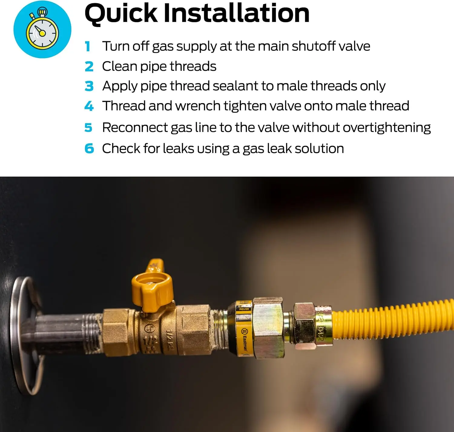 ·DURABLE CONSTRUCTION: Solid brass body provides strength and long-lasting performance for gas line installations