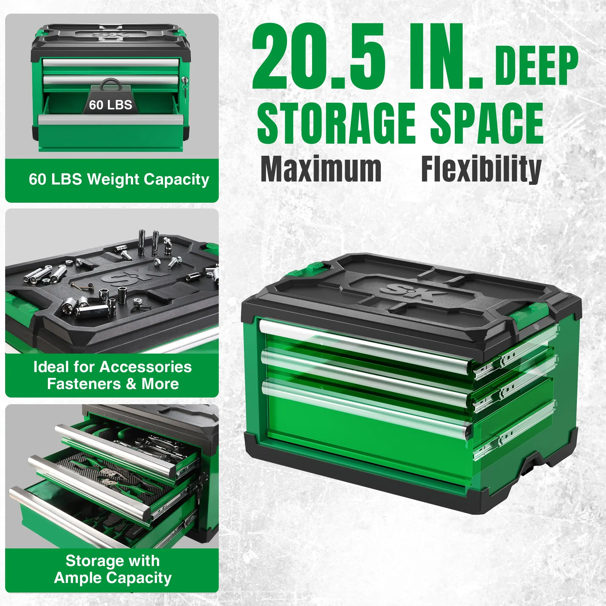 ·Expand your tool storage system with steel boxes and cabinets that provide space-saving organization and mobility. These units can be combined with a dolly cart and easily stacked onto any existing SK stacking module, allowing you to customize your tool storage solution according to your specific needs.