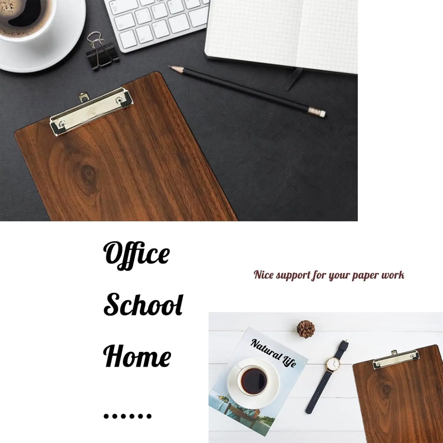 Crapyt Wooden Clipboard with Metal Clip Drawing Board A4 Size Hardboard for Memo Clipboard File Storage Wood Grain Thicken Teacher Teens