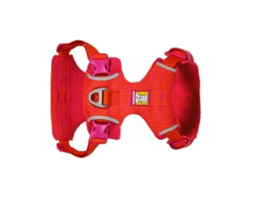 The harness features four points of adjustment, buckles for easy on/off, and two leash attachment points: an aluminum V-ring on the dog's back and reinforced webbing at the dog's chest to redirect dogs that pull on leash. Reflective trim and an integrated light loop for The Beacon™ boost visibility in low-light conditions. The expanded size offerings and soft construction make this harness ideal for companions of all breeds and sizes.