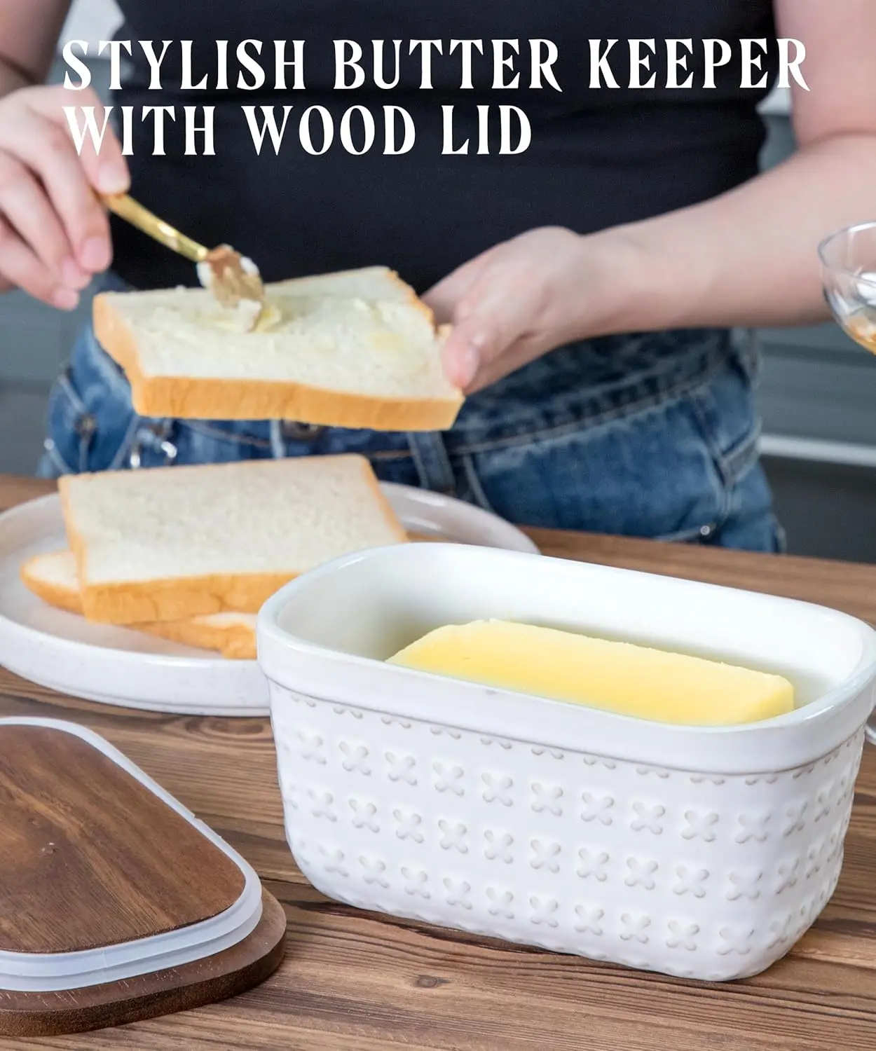 The wooden lid with a double-layer silicone gasket provides excellent sealing performance, helping to keep butter fresh for longer.