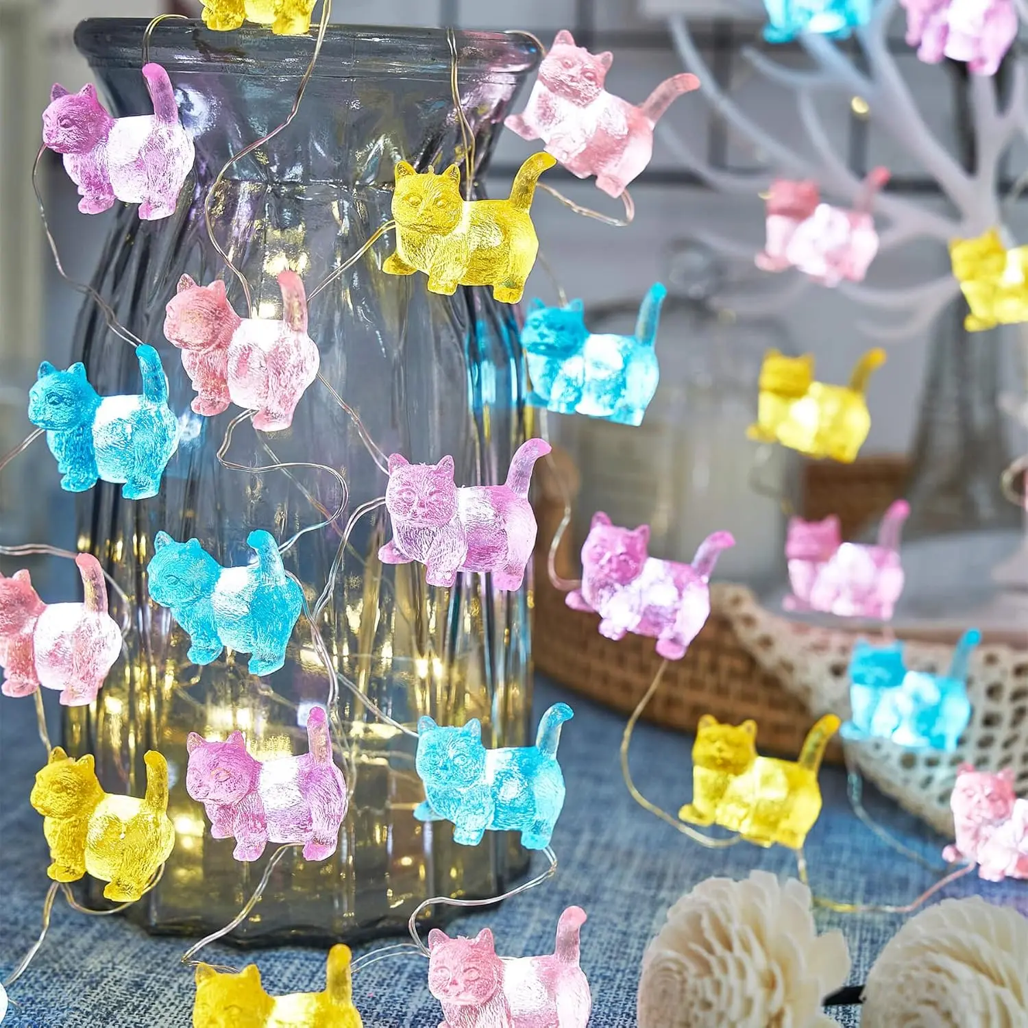 ·【Quality Unique Kitty Decoration】We use 0.45mm copper wire, much durable than other 0.38mm wire. The copper wire is flexible and could provide rigidity in the string lights allowing you to position each of the stars the way you want.
