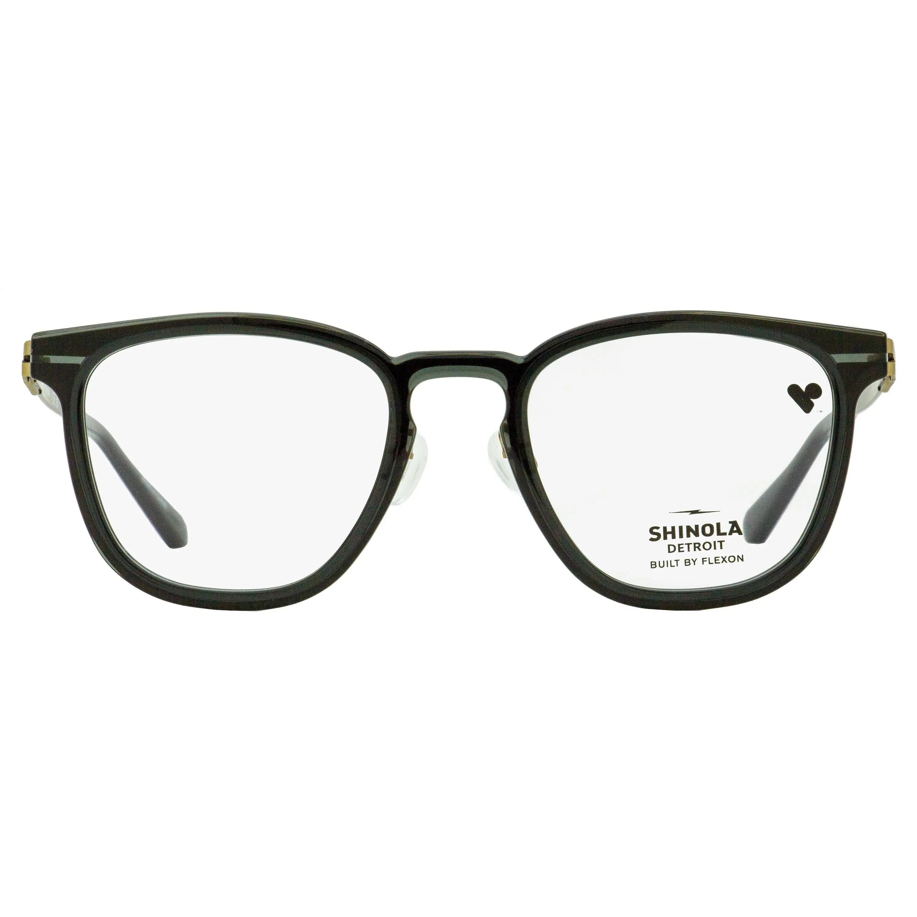 The Shinola 37001 optical frames feature a soft square lens shape with a key-hole bridge suitable for all genders. The injected plastic front is supported by a metal frame that is enhanced with flexible Flexon temples adorned with the brand's thunderbolt logo on both sides. Shinola eyewear blends classic American style with modern craftsmanship, offering high-quality frames made from premium materials. Each pair is designed with attention to detail, reflecting Shinola's commitment to durability and timeless design. Please note these eyeglasses are provided with Demo Lenses in order to demonstrate the final appearance of your frames. Please visit your local Optometrist or Optician to replace with optical quality lenses.
