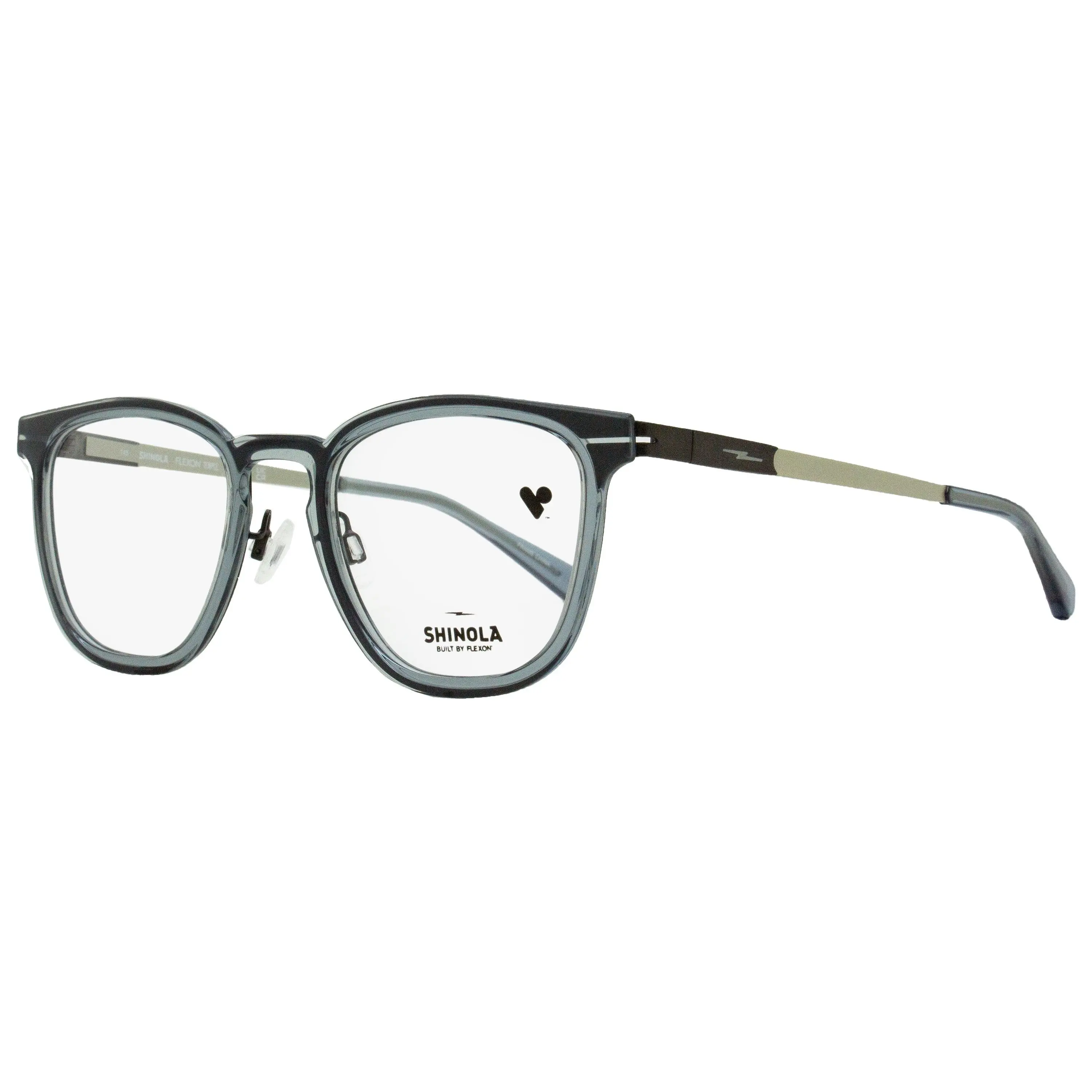 The Shinola 37001 optical frames feature a soft square lens shape with a key-hole bridge suitable for all genders. The injected plastic front is supported by a metal frame that is enhanced with flexible Flexon temples adorned with the brand's thunderbolt logo on both sides. Shinola eyewear blends classic American style with modern craftsmanship, offering high-quality frames made from premium materials. Each pair is designed with attention to detail, reflecting Shinola's commitment to durability and timeless design. Please note these eyeglasses are provided with Demo Lenses in order to demonstrate the final appearance of your frames. Please visit your local Optometrist or Optician to replace with optical quality lenses.