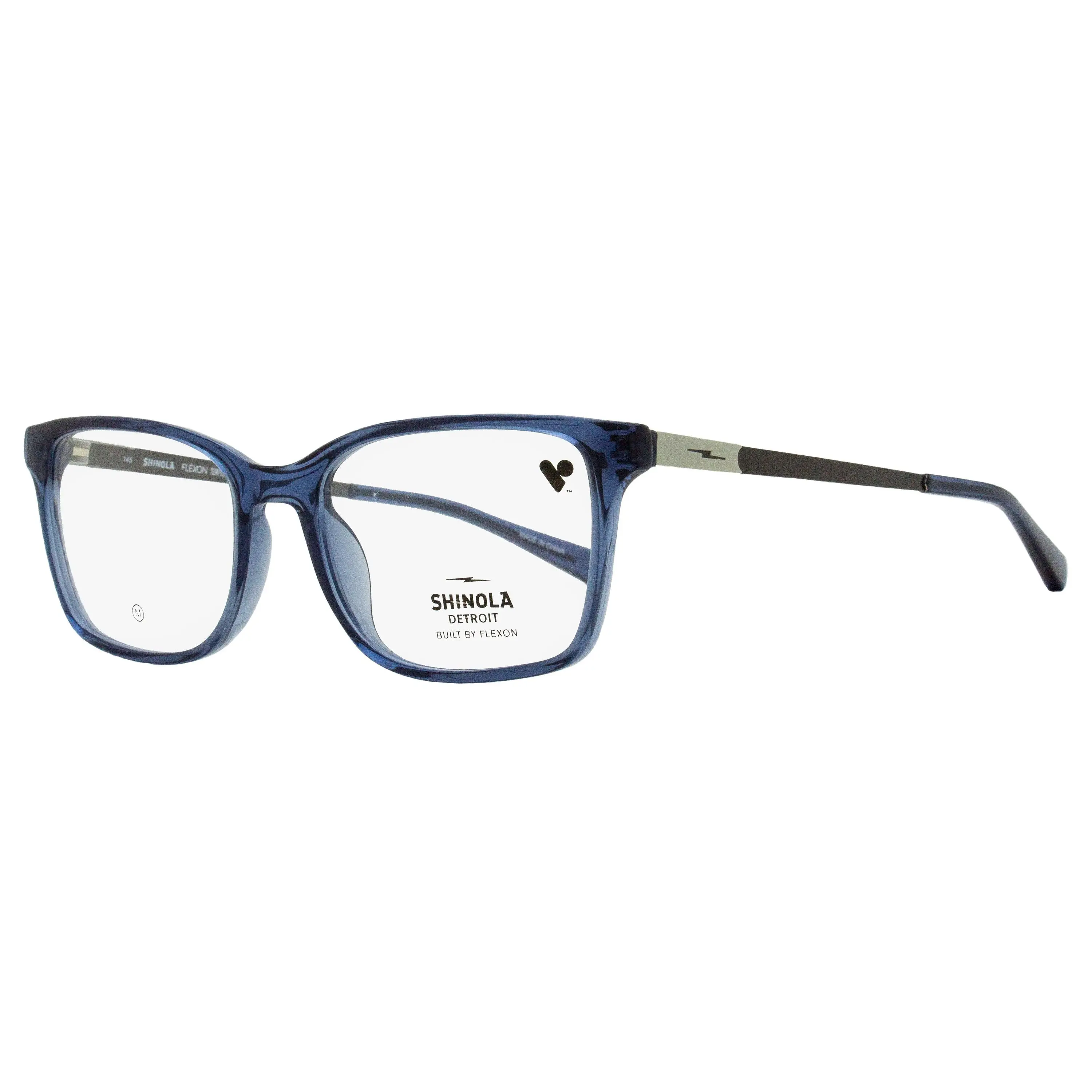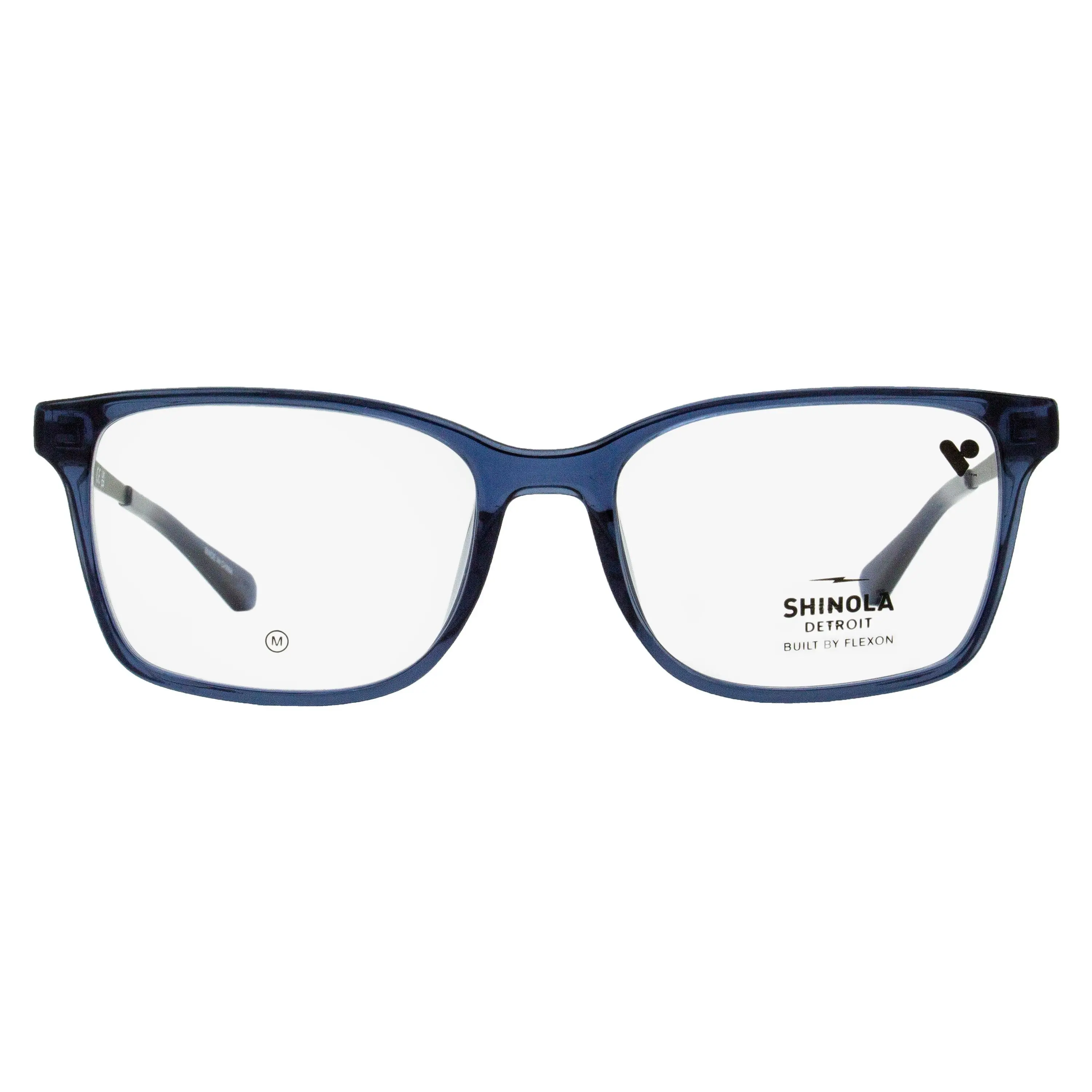 The Shinola 37003 optical frames feature a classic rectangular shape suitable for all genders. The injected plastic front is complimented with flexible Flexon temples adorned with the brand's thunderbolt logo on both sides. Shinola eyewear blends classic American style with modern craftsmanship, offering high-quality frames made from premium materials. Each pair is designed with attention to detail, reflecting Shinola's commitment to durability and timeless design. Please note these eyeglasses are provided with Demo Lenses in order to demonstrate the final appearance of your frames. Please visit your local Optometrist or Optician to replace with optical quality lenses.