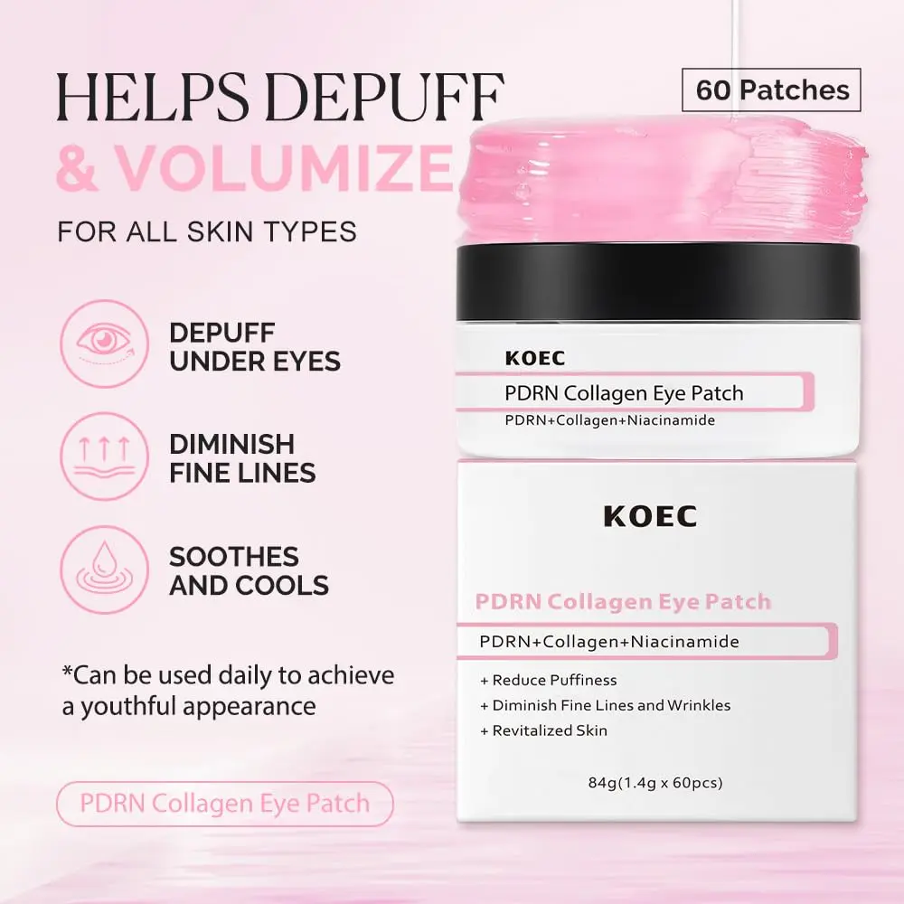 KOEC PDRN Collagen Eye Patch 60,Under Eye Patches for Puffy Eyes and Dark Circles,Eye Mask with Hydrolyzed Collagen & Niacinamide,Bridesmaid Gifts for Woman