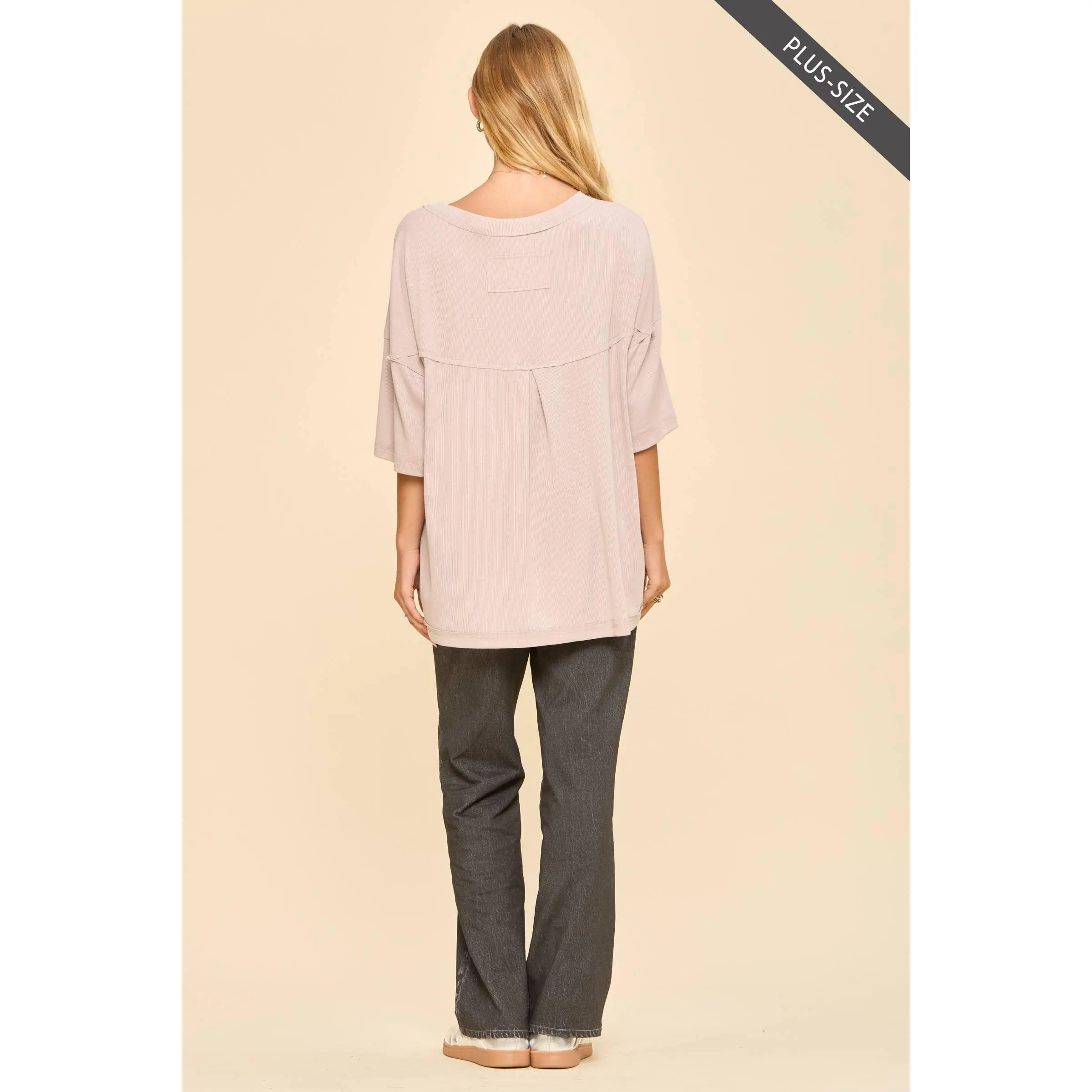 Embrace effortless style with this baby ribbed boyfriend shirt, designed for a relaxed flowy fit that flatters every figure. The pocket adds a functional touch, while a pleat on the back enhances the shirt's flow and movement. A unique patch detail gives a playful, modern twist to this piece.