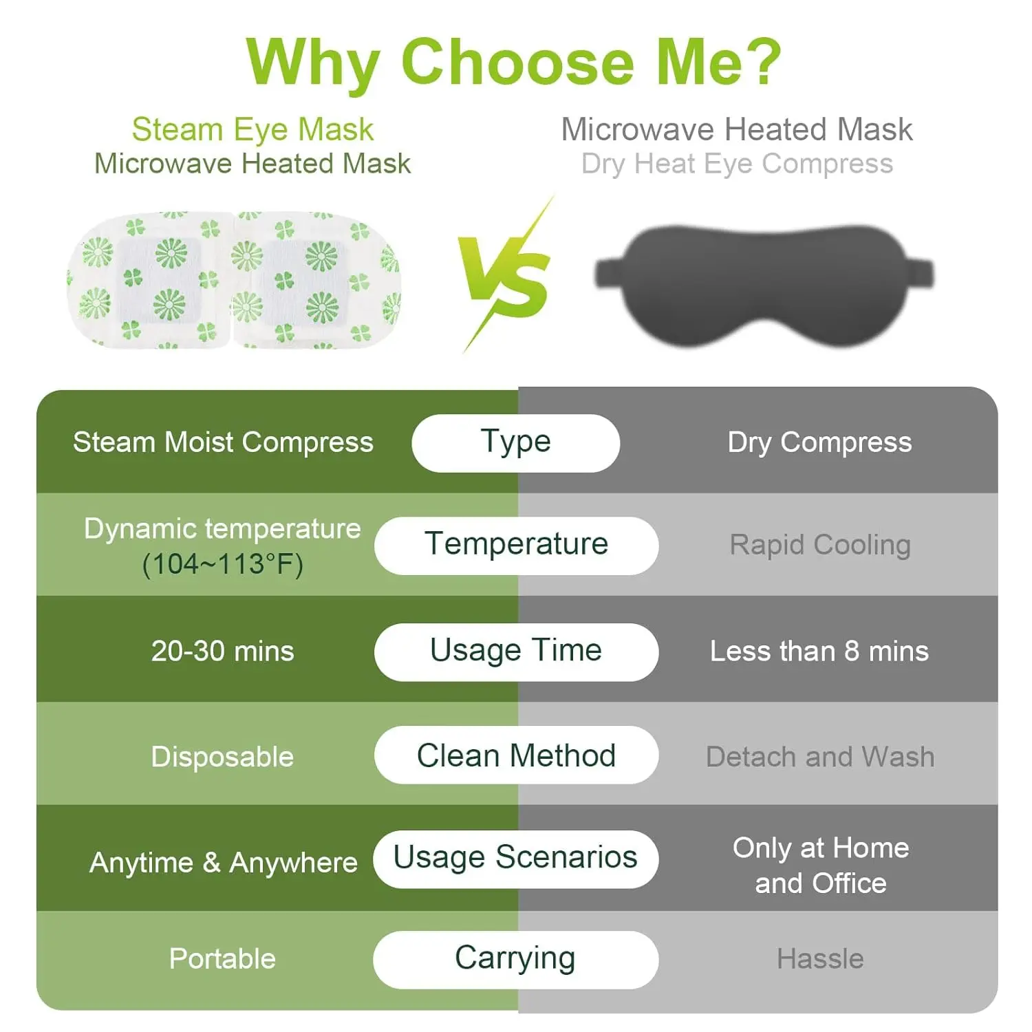 ·SELF-HEATING STEAM TECHNOLOGY FOR DEEP RELIEF:Activates in seconds upon opening, delivering 20-30 minutes of consistent, gentle heat (104°F~113°F) via water vapor and condensate. This targeted steam therapy relieves eye fatigue, soothes dryness, and helps reduce the appearance of dark circles—perfect after long hours of screen time or travel.