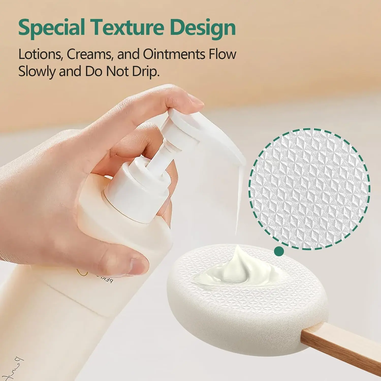 Back Lotion Applicator with 4 Replaceable Pads, Lotion Applicator for Back Self Elderly, Women, Sunscreen Applicator for Cream with 17" Curved Handle Easy to Target Back and Feet, White