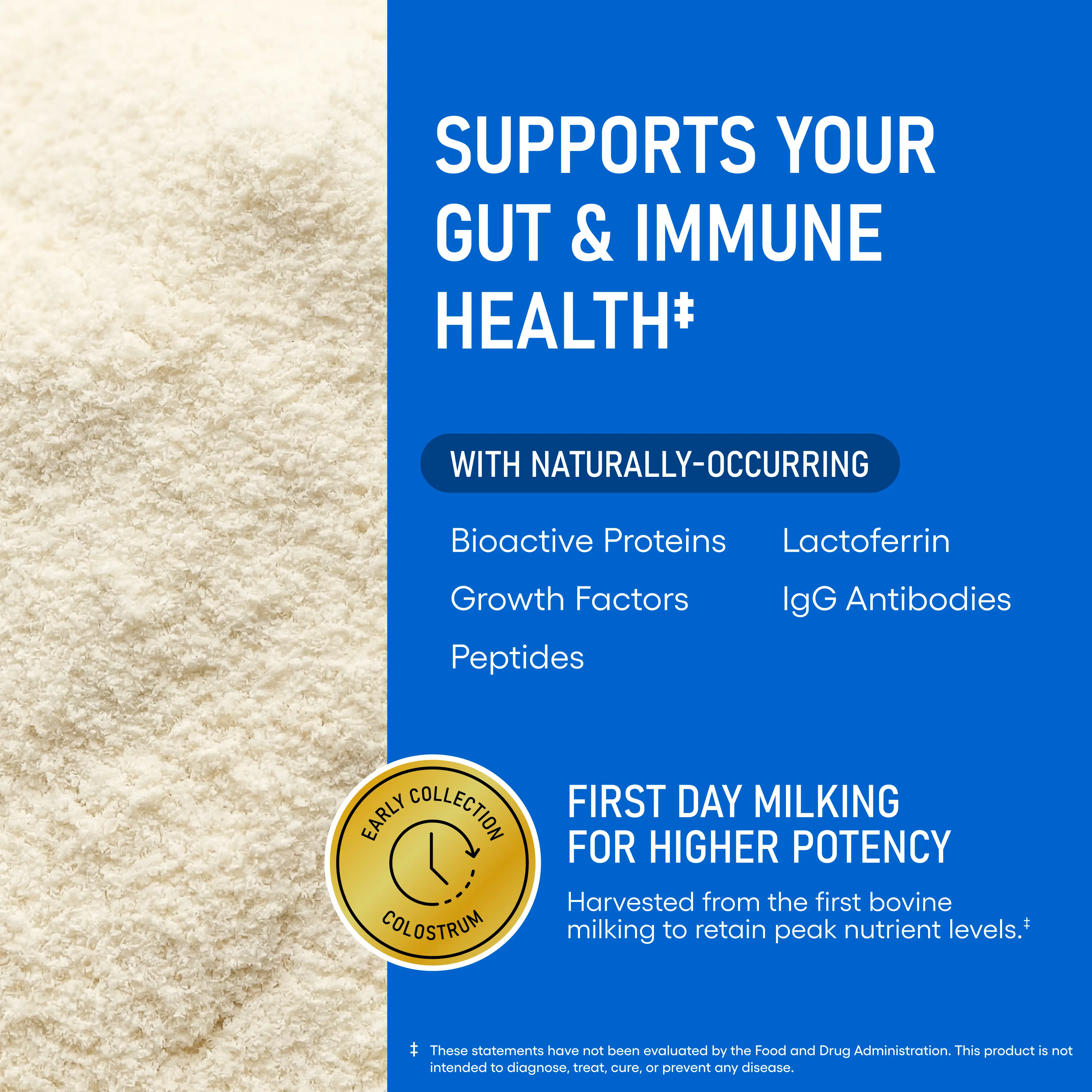 ·New to colostrum? It's nature's first superfood - Colostrum Gold uses first-day milking bovine colostrum, packed with IgG antibodies & growth factors for gut and immune support.
