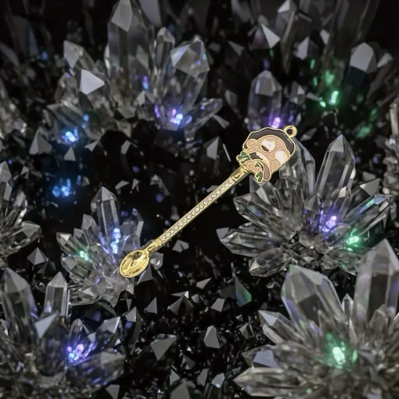 Size: 90 × 9 mm (3.54" × 0.35") Weight: 7 g (0.25 oz) Material: Zinc alloy, enamel, rhinestones Uses: small scoop, collectible Colors: - Silver - Black - Gold - Rainbow