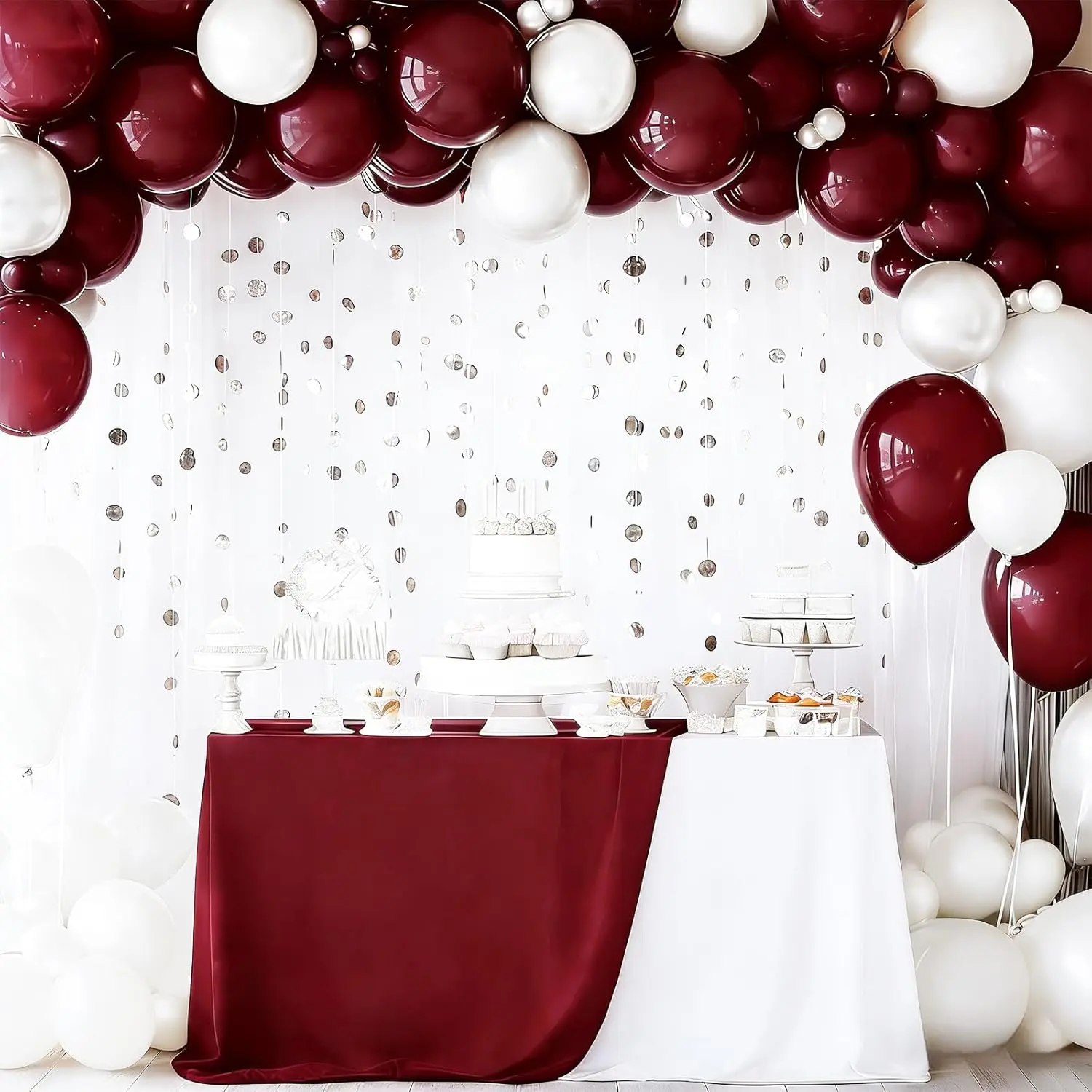 Graduation Party Decorations Maroon White 2026/Graduation Decorations Maroon/Burgundy Balloon Arch Kit/Burgundy White Silver Confetti Balloons 134pcs/Birthday Wedding Bachelorette Party Decor
