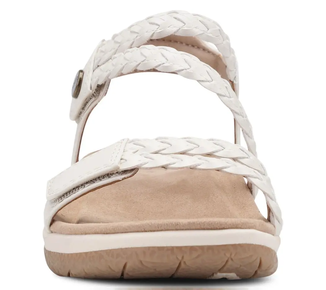 Supreme comfort, effortless style, eco conscious designs - Stelon sandal has it all. Amazingly soft this upper is done with braided straps and two points for adjustability - hook & loop closure at the front as well as around the ankle. Arch support and cushioned insole for all day comfort. Extra padding at back of ankle. Sneaker like outsole with rubberized bottom & nice tread beneath each step. Heel Height:0.98". Sole Thickness:0.35". Fit:True to Size. Material:Man-Made. COO:Import.