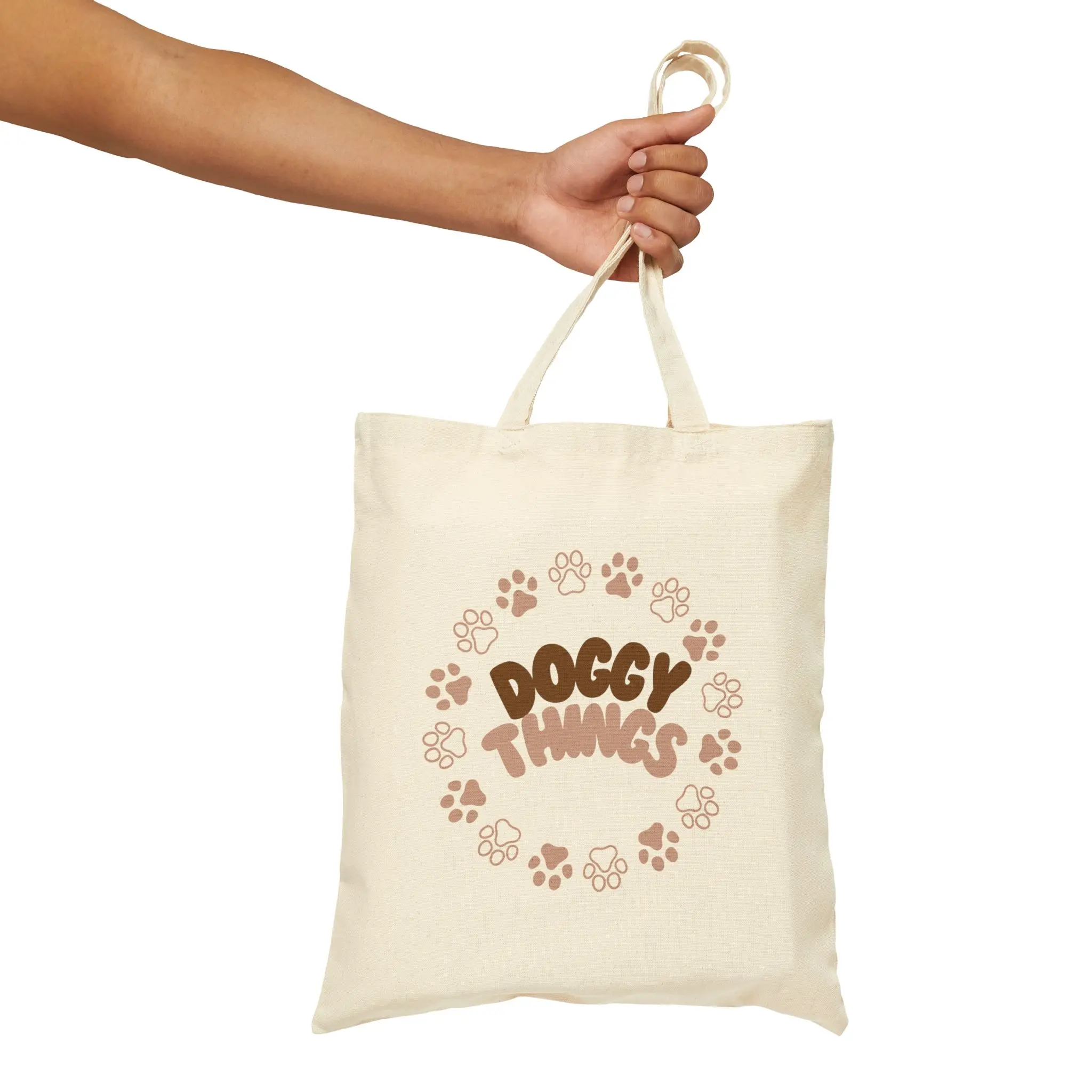 Doggy Things Tote Bag | Paw Print Circle, Natural Canvas