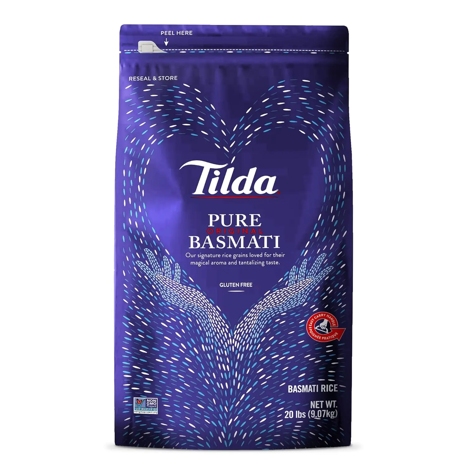 ·Enjoy a delicious bowl of natural long-grain Basmati rice with our Tilda Pure Basmati Rice bulk bag sizes! Our Pure Basmati Rice is grown and harvested at the foothills of the Himalayas. We carefully remove any broken rice to ensure that each package has the highest-quality grains. Our rice is gluten-free, contains no additives or preservatives, and is Non-GMO Project Verified, making this rice an excellent choice for anyone, including vegans and vegetarians. Our Pure Basmati Rice is also certified Kosher and free from cholesterol. Choose from our different sizes, like our 10-pound and 20-pound bags, for a long-lasting and delicious addition to your kitchen pantry. Use our non-BPA resealable bags to keep your rice fresh and ready to use any time. To cook your Basmati rice, add 1/4 cup of dry rice per serving into some cool water to soak for 30 minutes. Rinse the rice thoroughly, and drain your grains. Add the rice to a large pot of boiling water and cook it on medium heat for 810 minutes. Drain well, cover, and let the rice stand for 3 minutes. Lightly fluff this long-grain rice with a fork and serve. Eat this rice with your favorite curries, grilled meats, and other Indian cuisines to enhance the flavor of your meal. Experience and explore different cuisines from around the world with our Basmati rice as you use it in all sorts of meals! Tilda is a much-loved British brand with a 50-year heritage of inspiring the most delicious and diverse rice dishes around the world. Our grains are purity tested, providing a magical aroma and delicate fluffy texture. Each of our grains contains no preservatives for a natural and satisfying taste. Let our rice become a huge part of any dish to instantly elevate the taste with our high-quality ingredients. Experience all kinds of delicious cuisines from around the world every time you take a bite of our rice products. They’re Tildalicious!