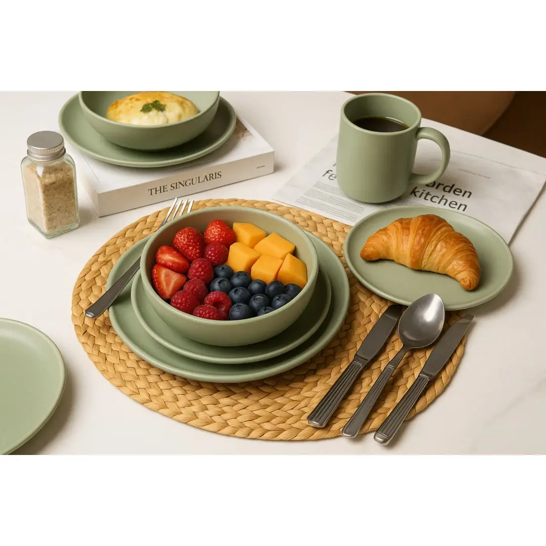 【Premium Stoneware Construction】: Crafted from high-density stoneware fired at 1180°C/2156°F for 8 hours, these chip-resistant dishes withstand daily use while maintaining elegant matte glaze finish.