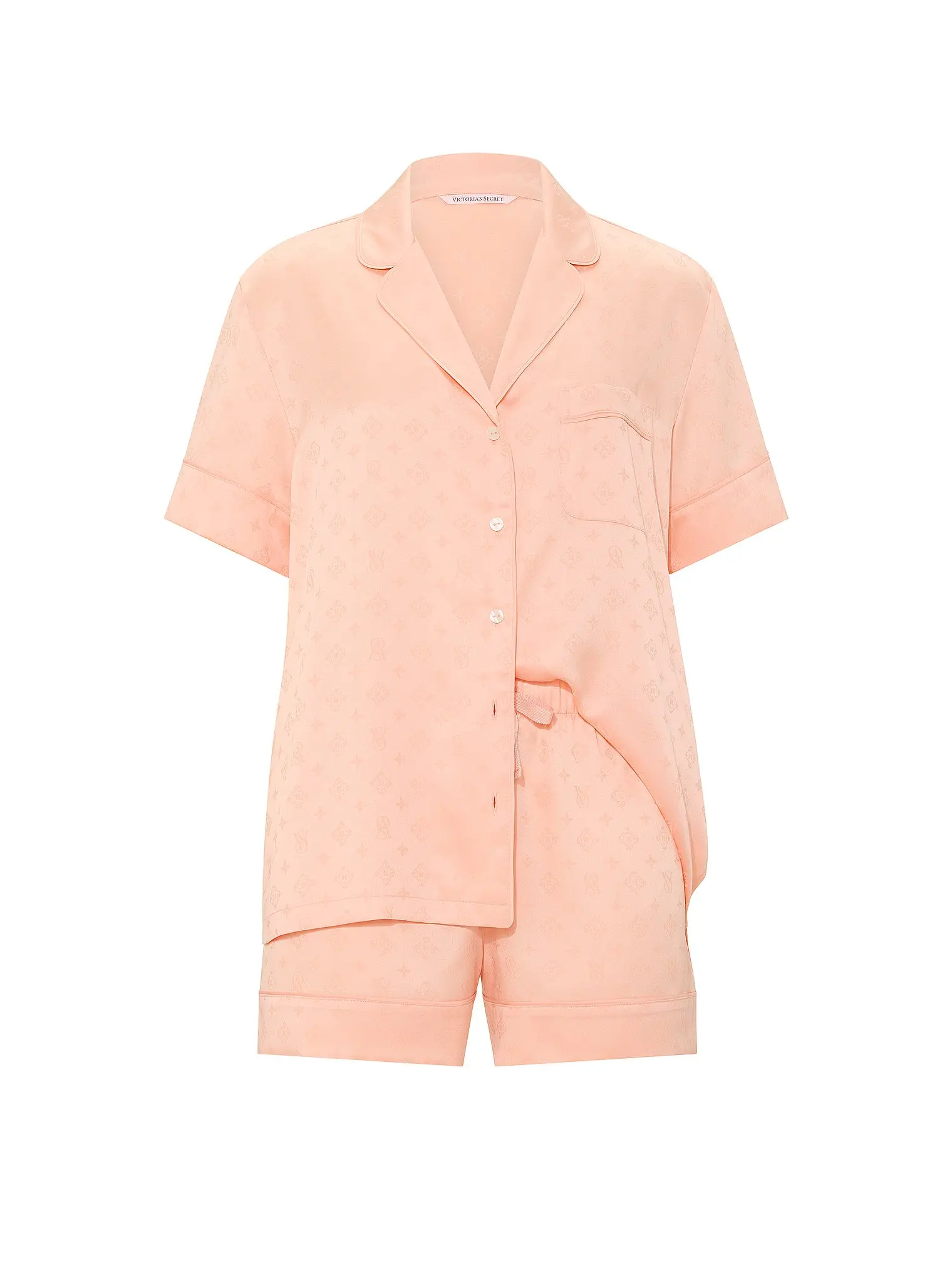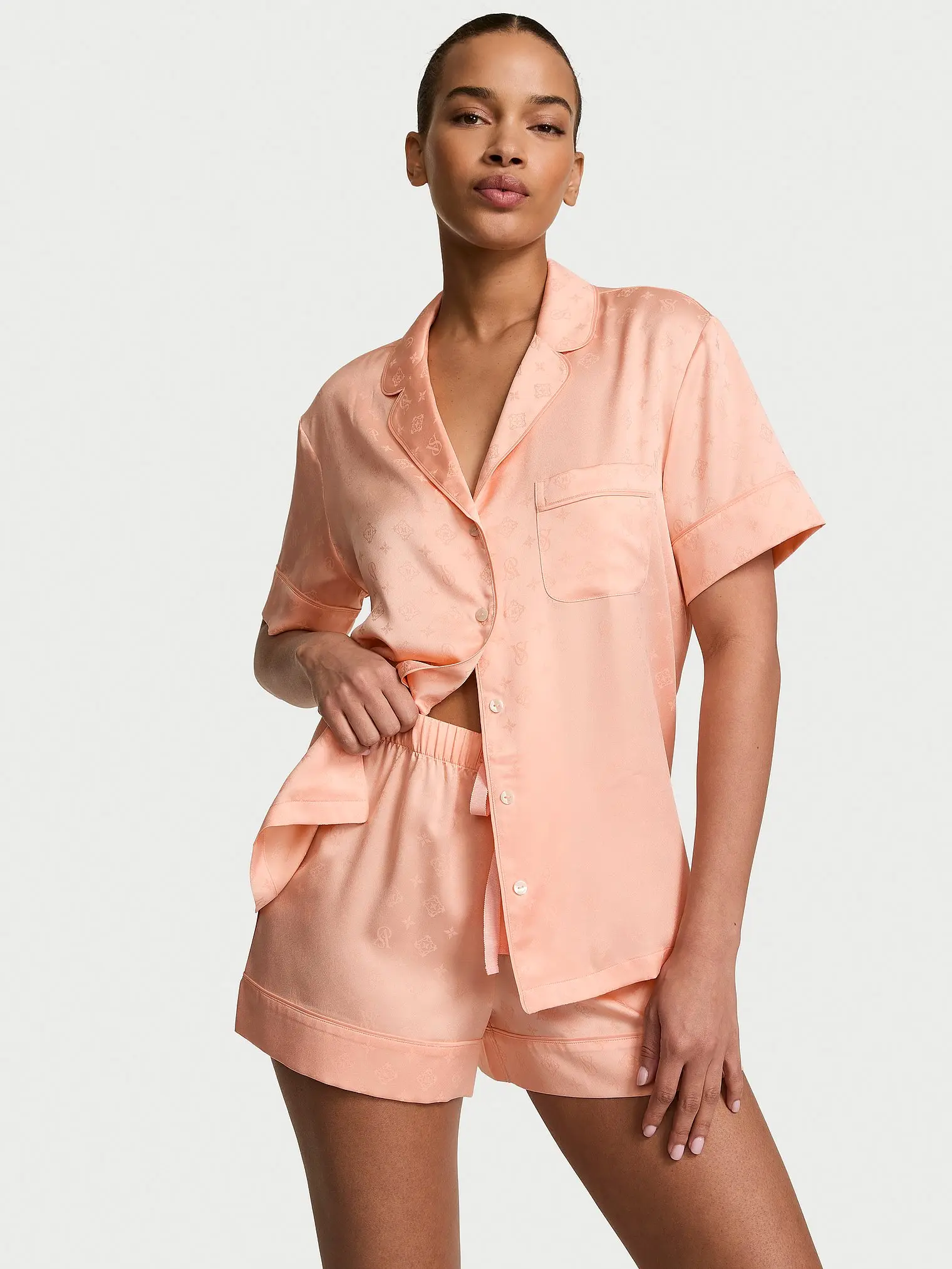 With an upscale look and feel, our luxe, logo-jacquard satin gives this PJ Set its ultra-sophisticated edge. Wind down in glossy Pants and a matching long-sleeve Top, complete with logo-emblem embroidery at the chest pocket.