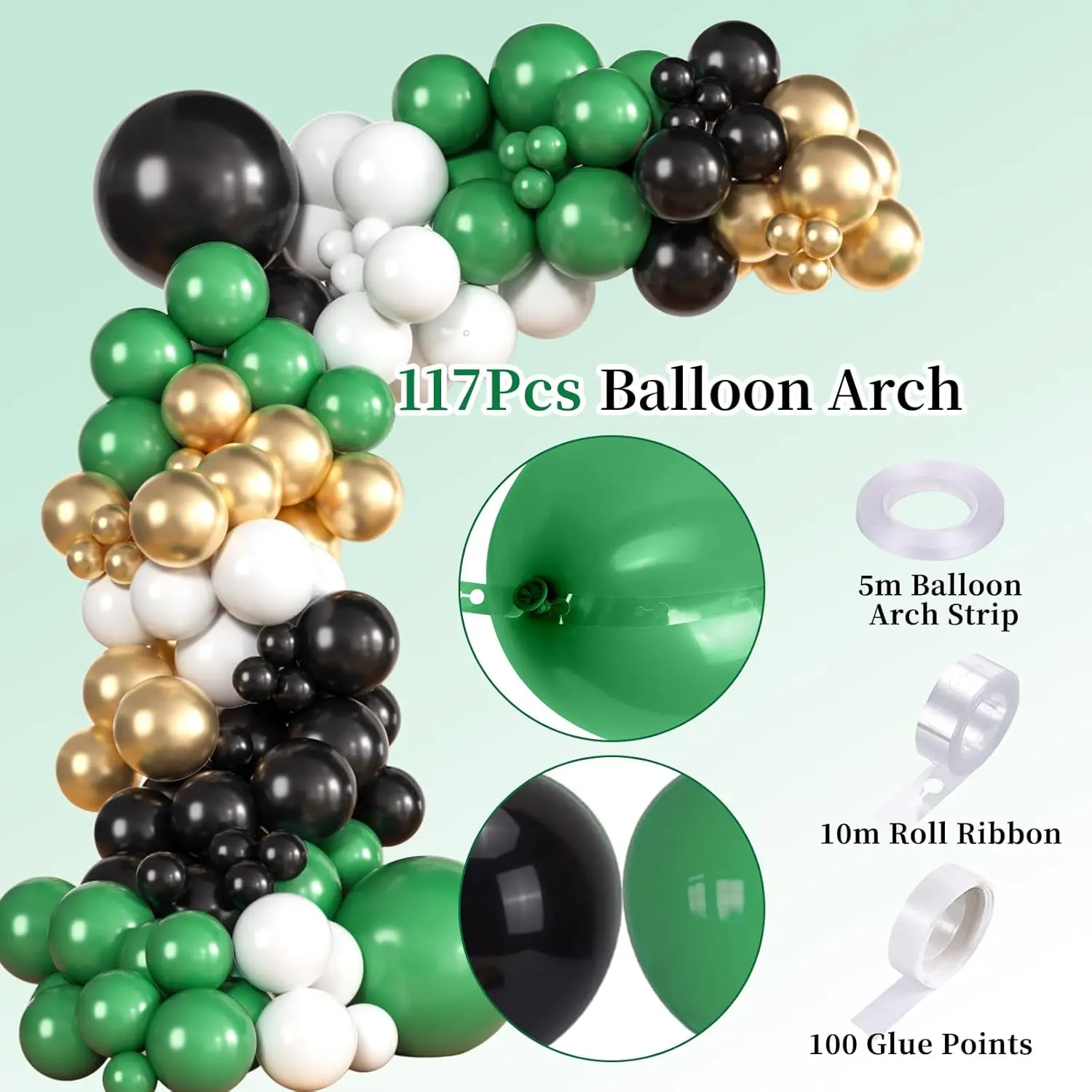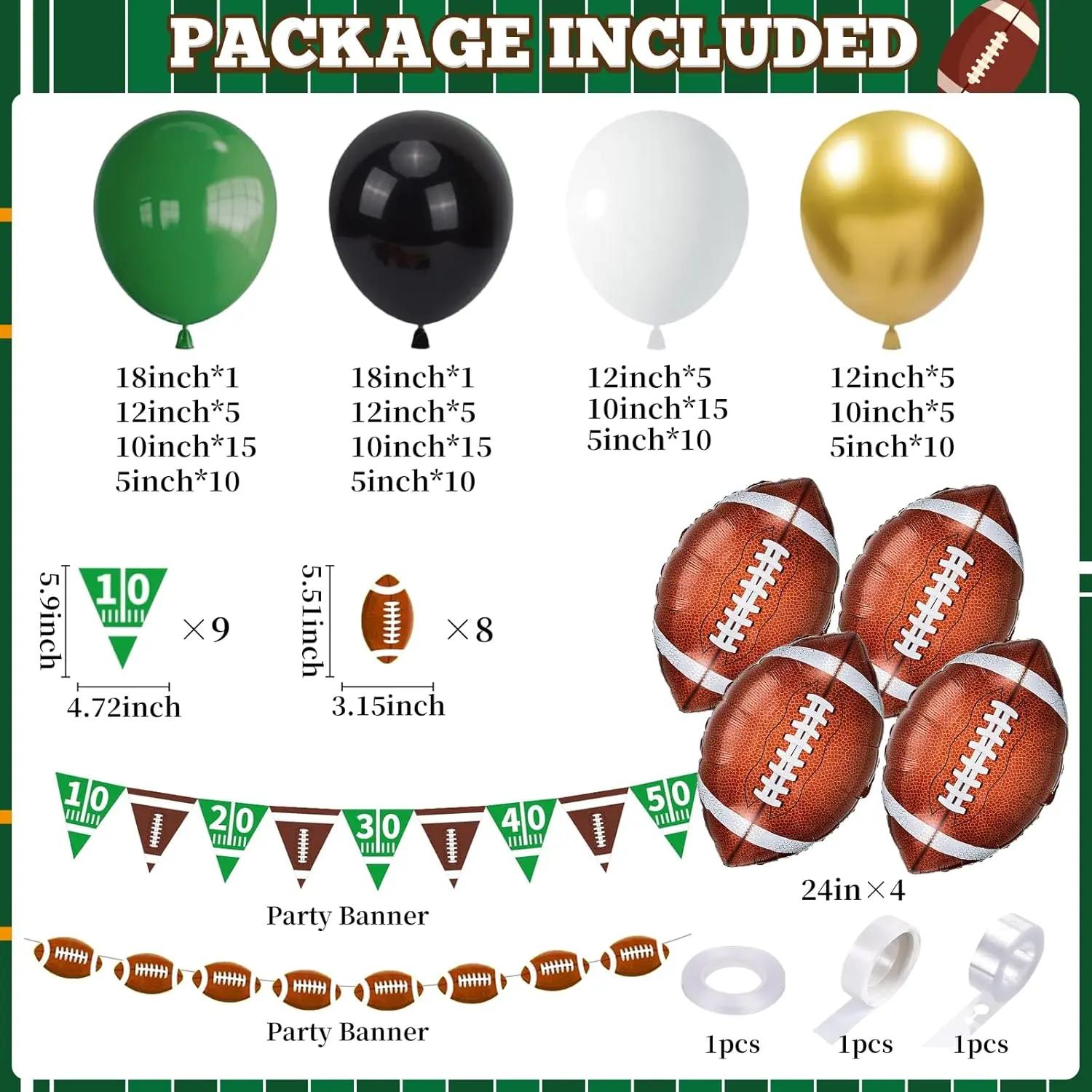 117 PCS Football Balloon Arch Kit with Green, Gold & Banner Balloons for Sports Party Decor