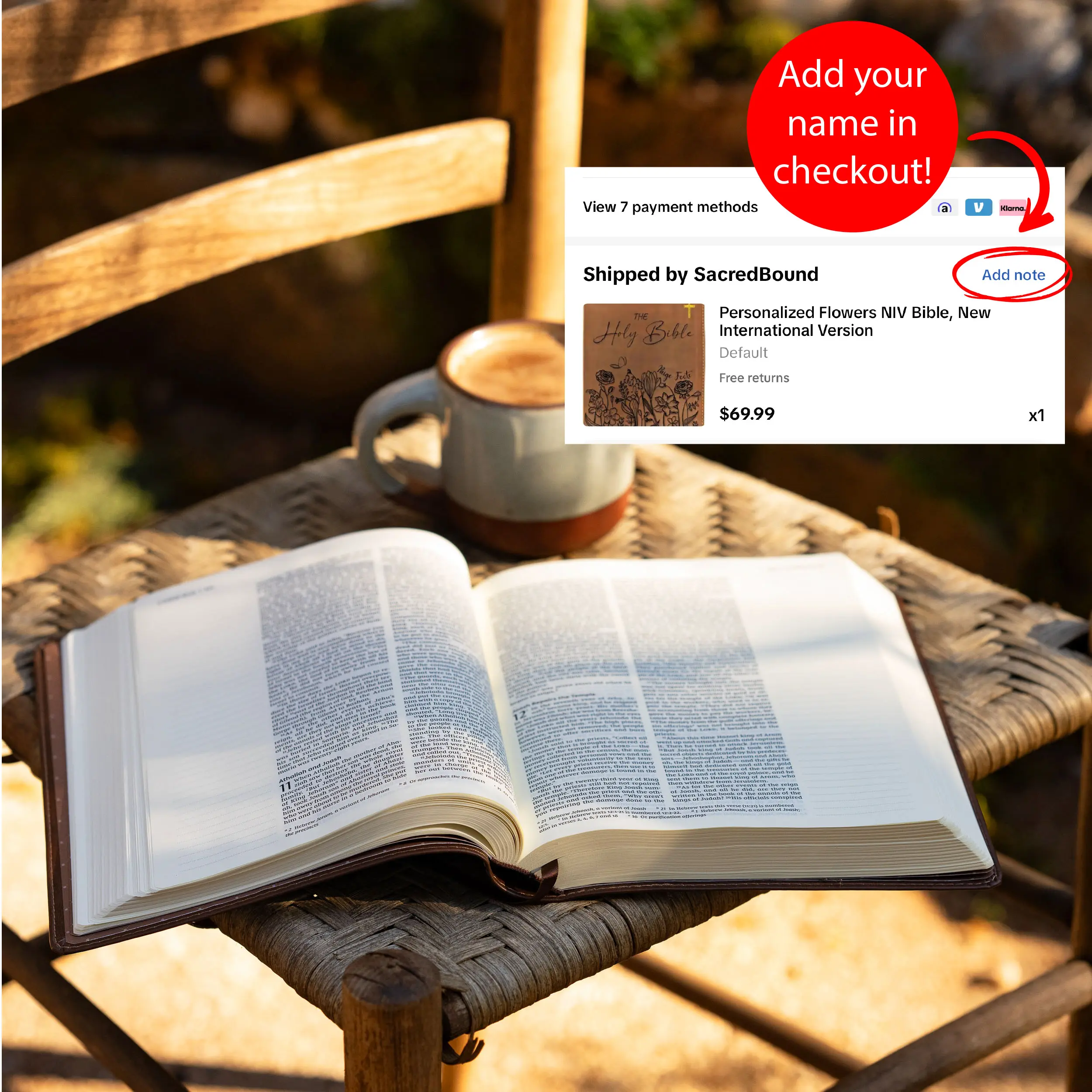 IMPORTANT: Click “Add Note” at checkout and enter the name EXACTLY as you want it engraved A Bible they’ll treasure forever