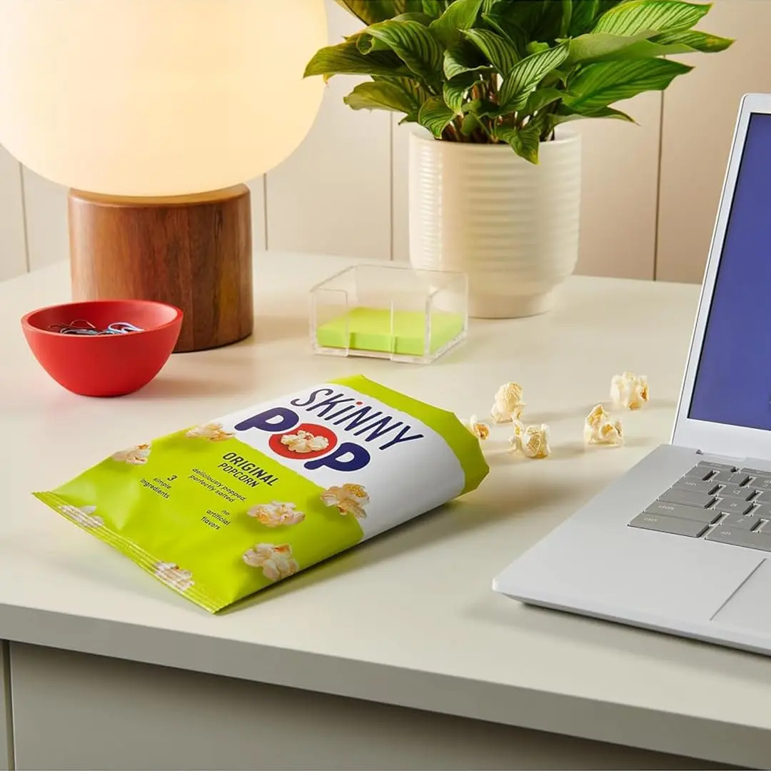Ideal for movie nights, lunchboxes, or errands, SkinnyPop offers a crunchy, fluffy snack. Pair it with your cravings: Dairy-free White Cheddar, Sweet & Salty Kettle, or Microwave Butter popcorn.