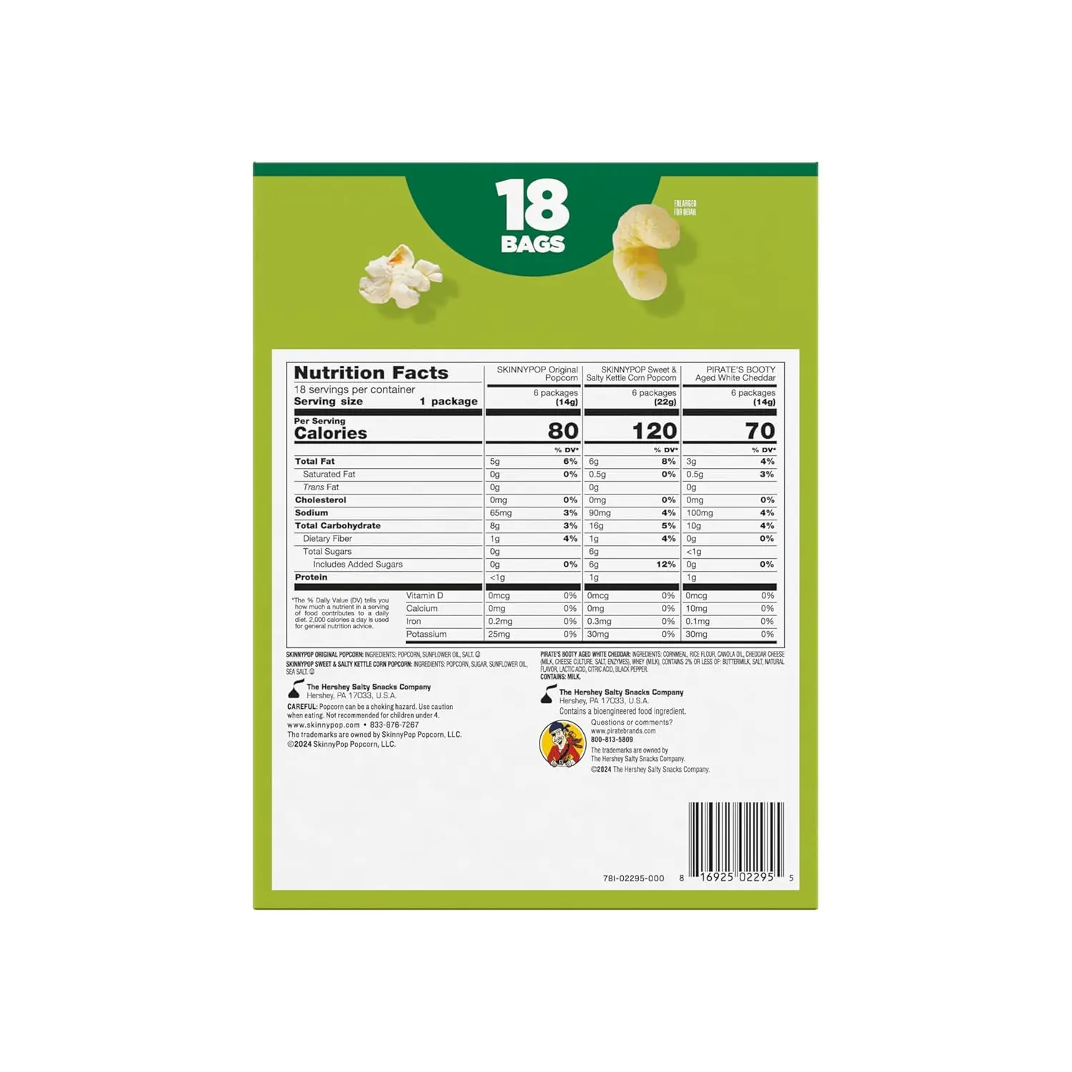 ·Lunch Box Mix Multipack 18 Count: Enjoy a variety of SkinnyPop snacks in individually sized bags. Each pack includes 0.5oz and 0.8oz bags, perfect for on-the-go snacking.