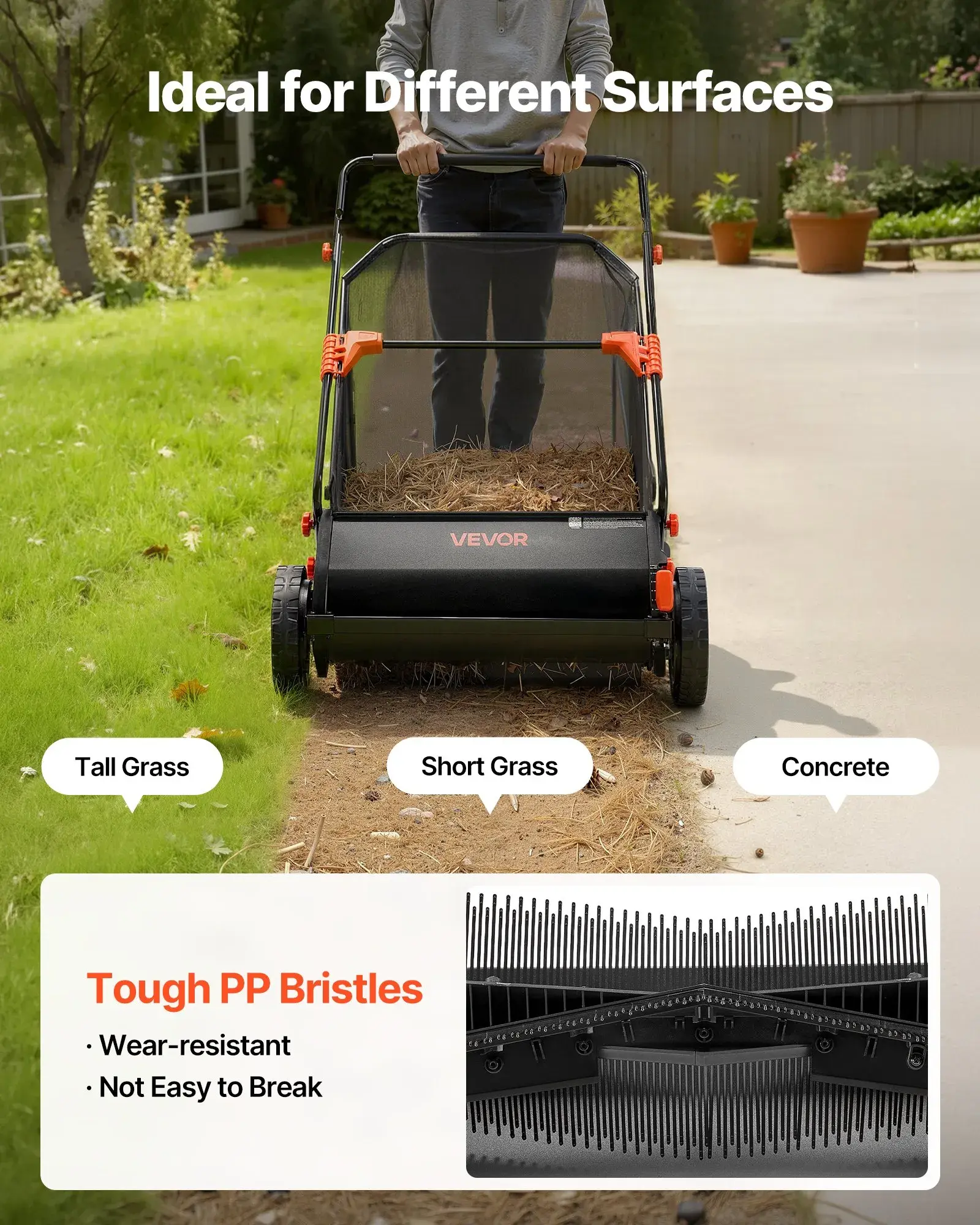 ·High-Efficiency V-Shaped Brush: The package includes three V-shaped leaf sweeper brushes with a concentrated structure that reaches deeper into grass for more thorough sweeping. Angled ground contact reduces resistance, allowing smoother pushing