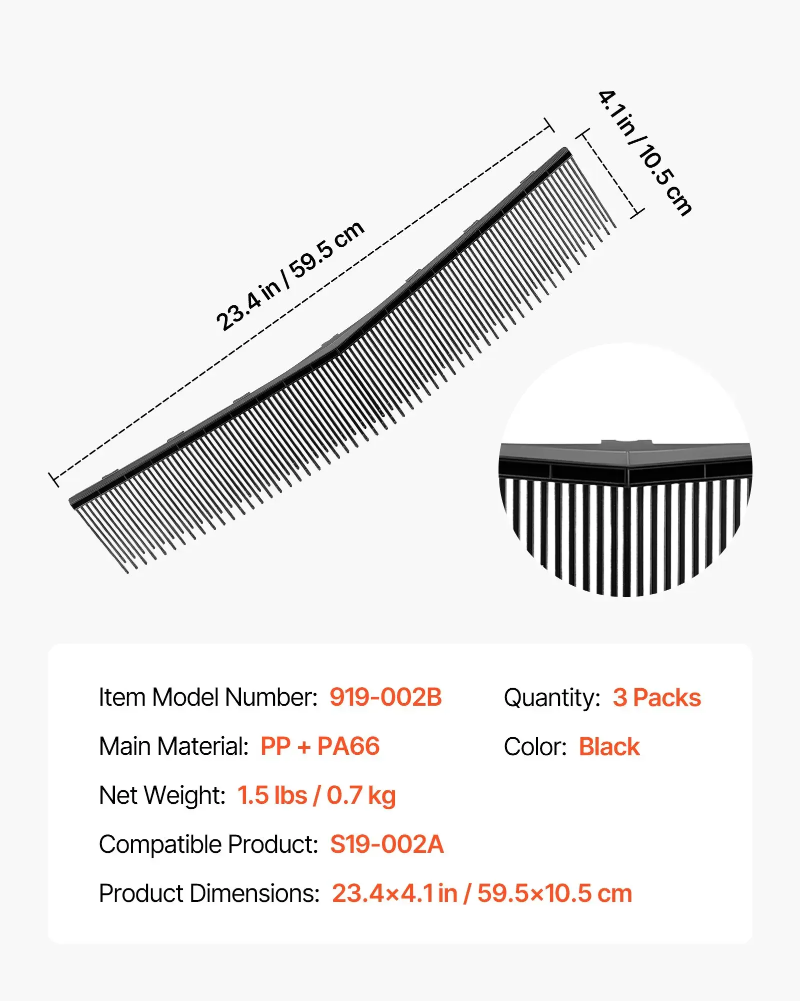 ·For 26" Push Lawn Sweepers: This 3-pack lawn sweeper brush replacement is designed for 26 in push lawn sweepers (Model: S19-002A). Each brush measures 23.4 × 4.1 in (59.5 × 10.5 cm), delivering a full 26 in (66 cm) sweeping width