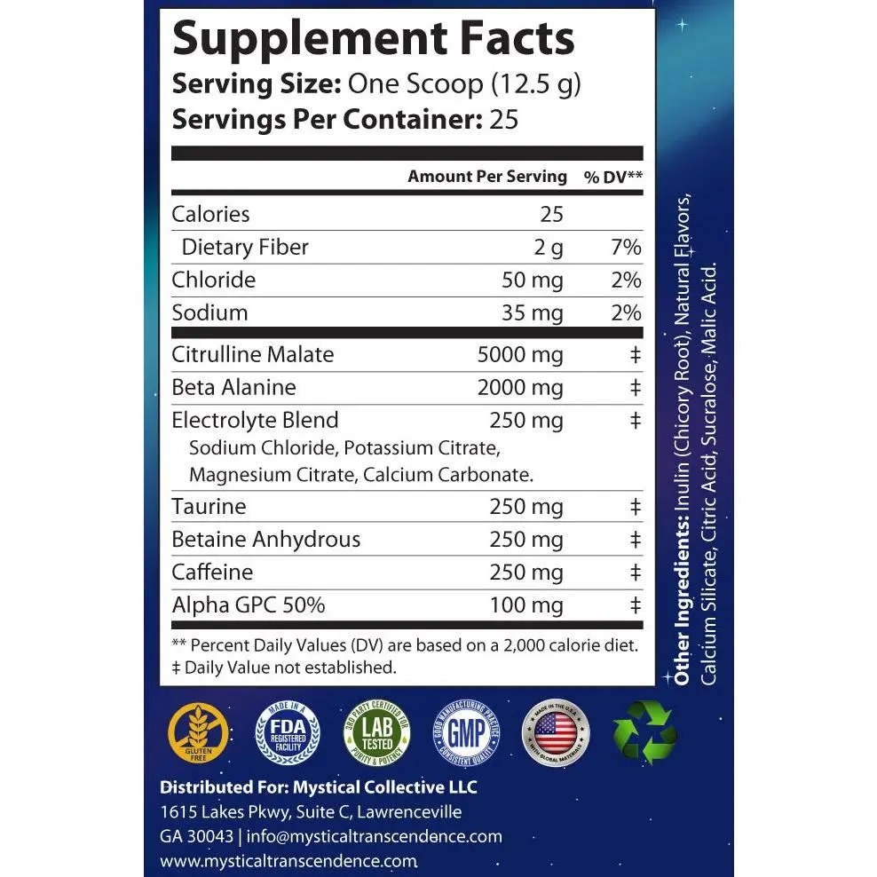 Warning: This product is only intended for healthy adults 18 years of age or older. Contains 250mg of caffeine per serving. Do not combine with other stimulants. Do not exceed 1 serving per 24 hours. Consult your physician if you are taking any medications. Do not use if pregnant or nursing. Keep out of reach of children.