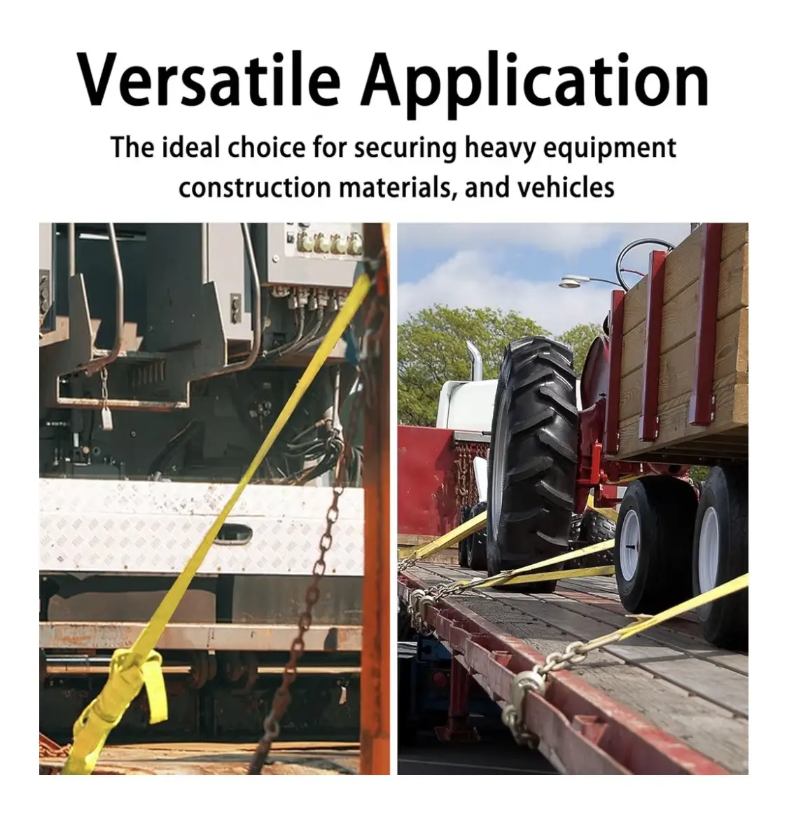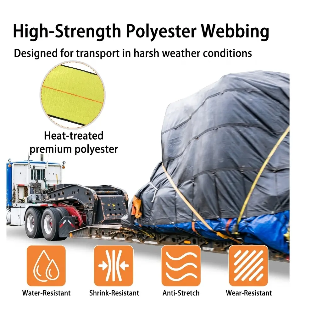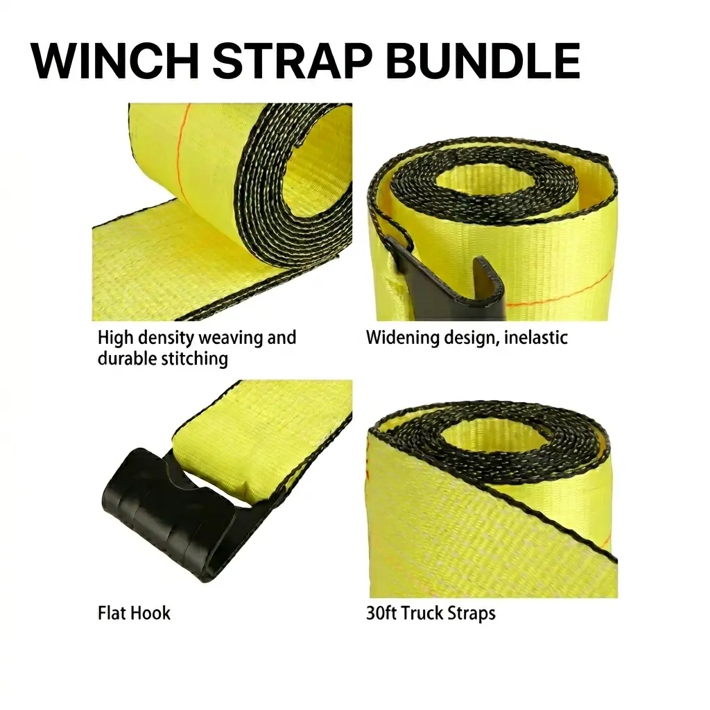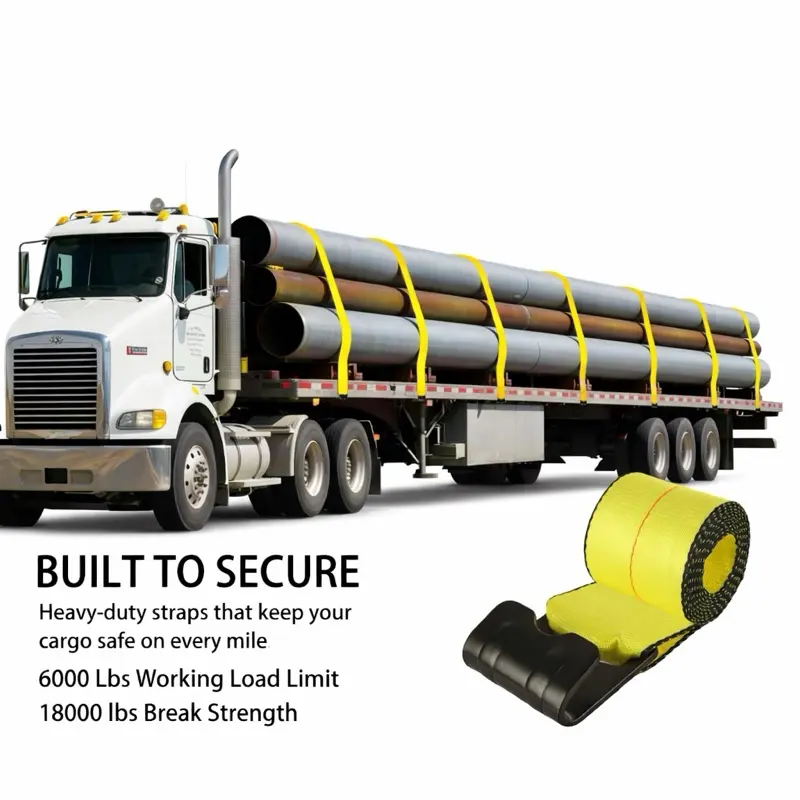 Asegura tu carga con máxima confianza. Este 2 pack de correas de amarre 4” x 30’ ofrece alta resistencia (18,000 lbs) y ganchos planos para un ajuste firme y seguro. Ideales para camiones, trailers y cargas pesadas. Perfectas para uso profesional o diario.