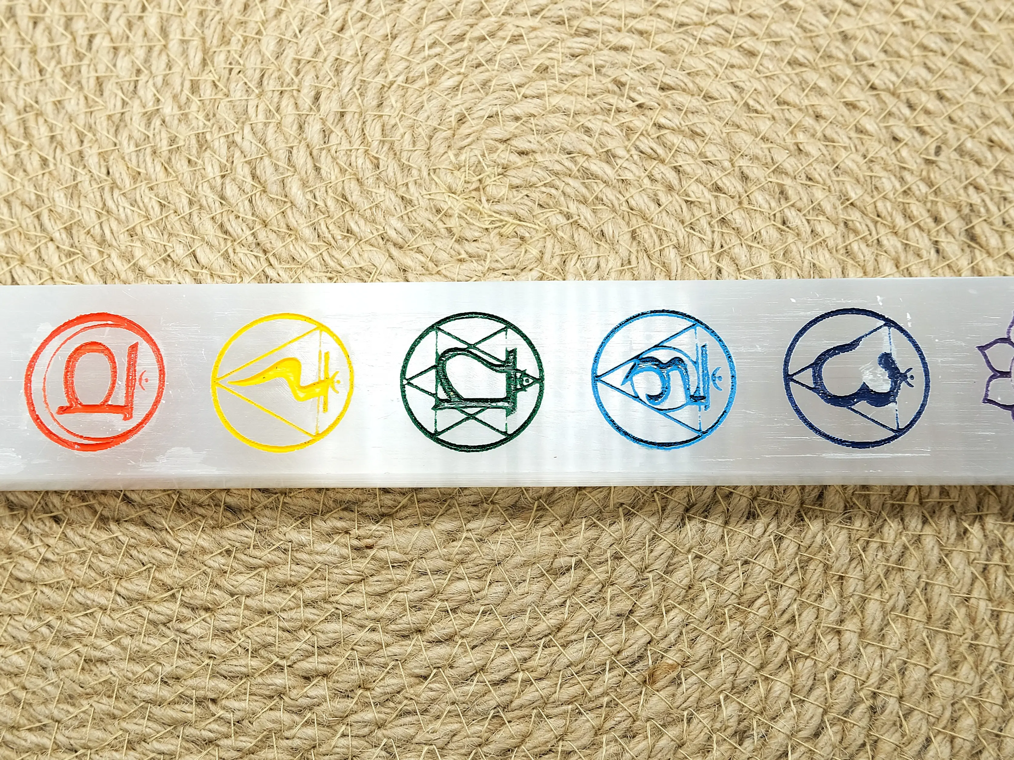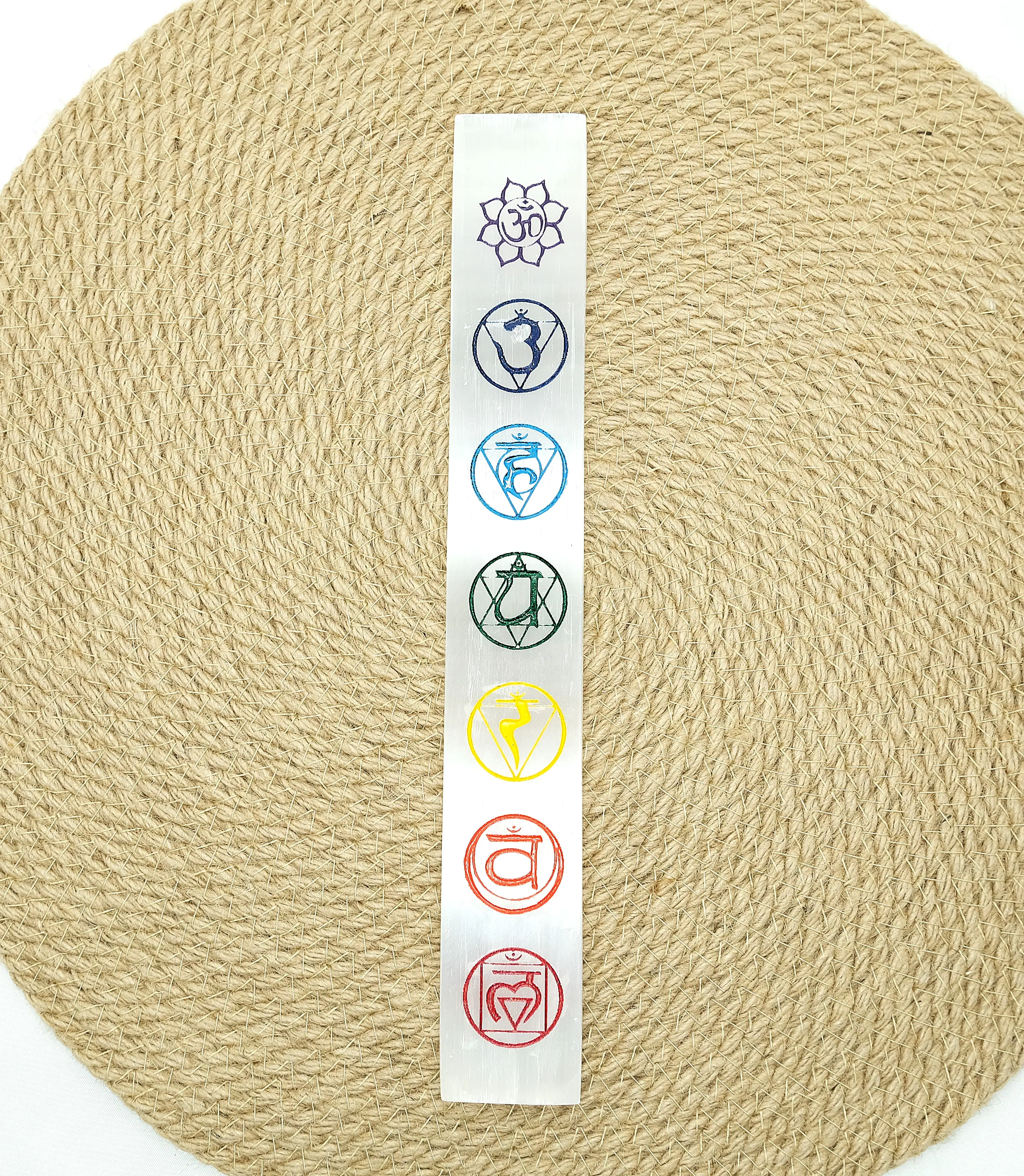 • Design: Etched with all seven chakra symbols for full-spectrum alignment