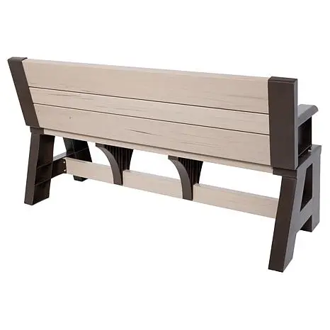 Bench 2 Table Convert-a-Bench Transform your space effortlessly with this versatile bench that converts into a picnic-style table in seconds. Crafted from durable resin and vinyl, it’s perfect for both indoor and outdoor use, making it a great addition to any home or patio. Whether you’re hosting a casual gathering or enjoying a quiet moment, this multi-functional piece adapts to your needs with ease. What You Get 4 2x6 planks 2 2x4 planks 1 2x4 drilled plank 2 support braces 1 left arm, 1 left leg 1 right arm, 1 right leg 4 screws and 4 nuts, 2 hinge pins Instructions/Warranty