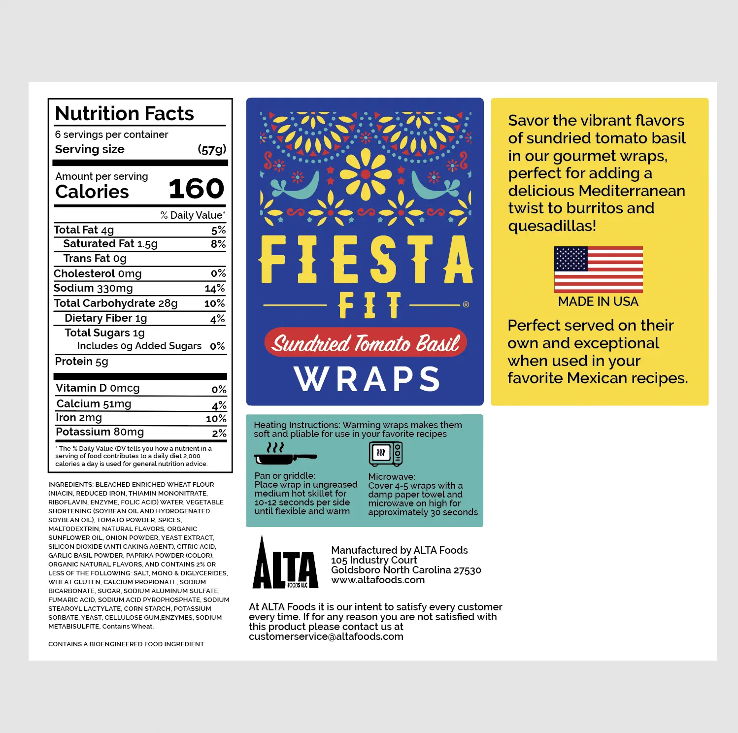 Bring bold, elevated flavor to every bite with Fiesta Fit Sundried Tomato Basil Wraps. Crafted with a rich blend of sundried tomato and savory basil, these wraps add a delicious, gourmet twist to your favorite meals.