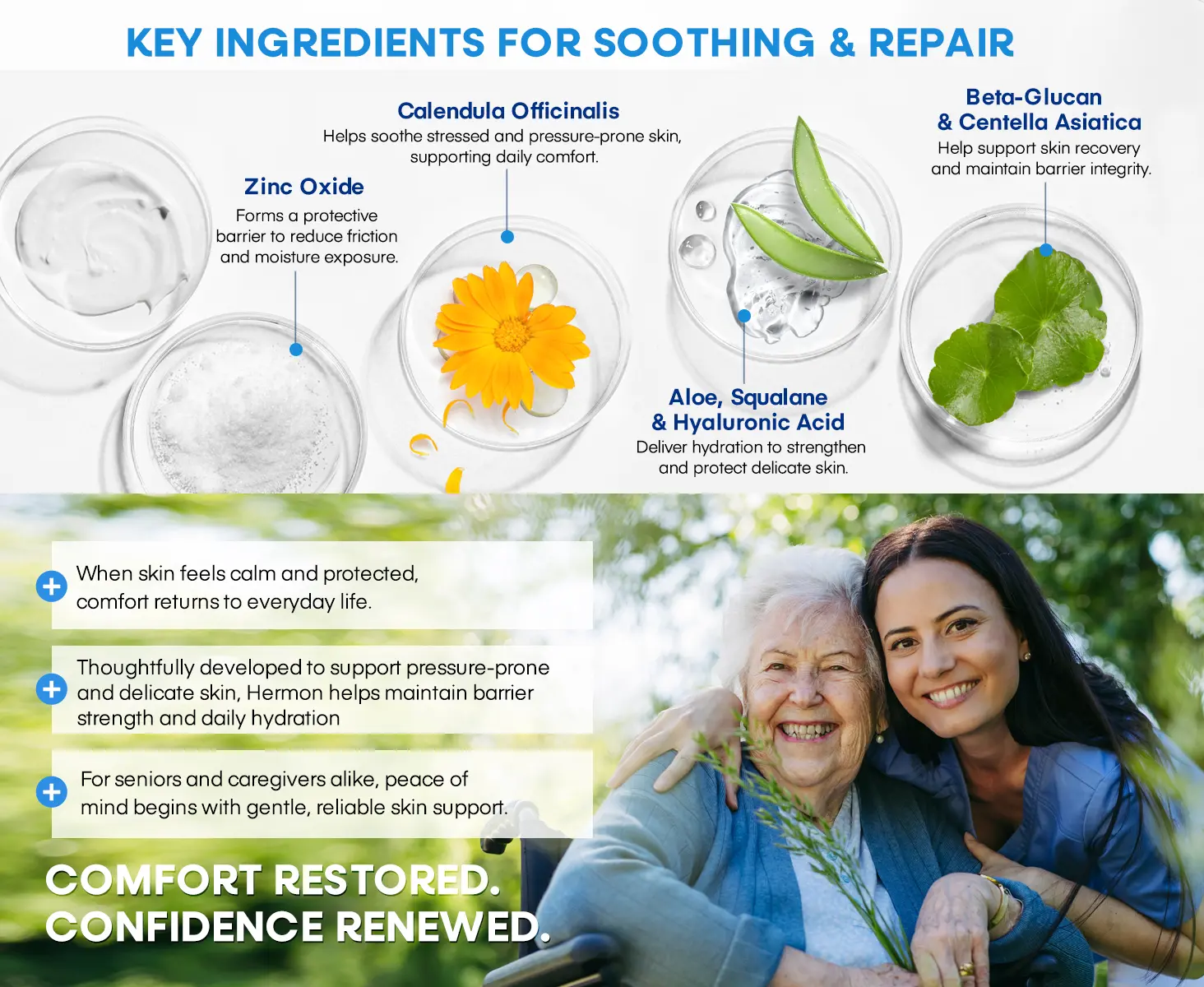 • Clinically-Targeted Relief for Pressure-Prone Skin — Specially formulated for bedridden individuals, post-surgery patients, and wheelchair users to help soothe, protect, and nourish compromised skin where it's needed most.