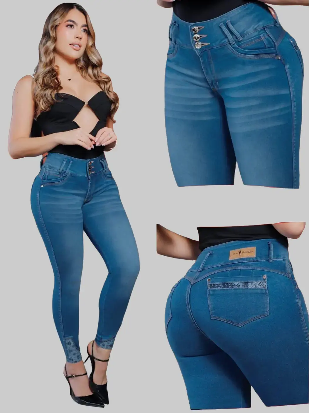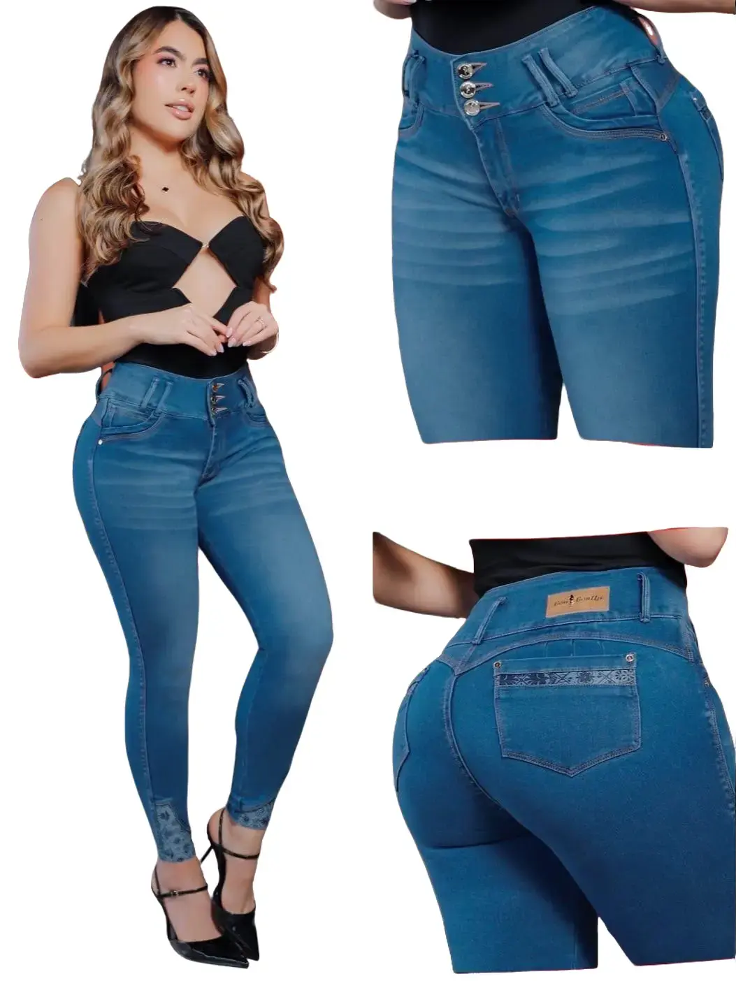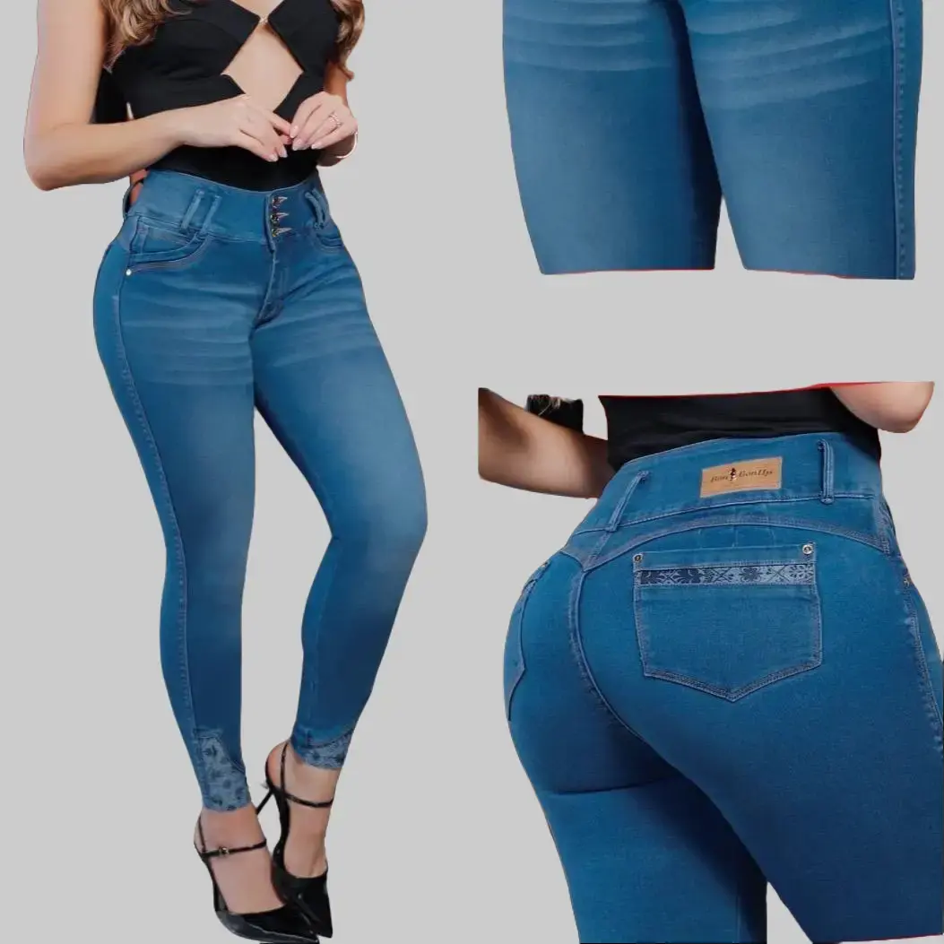 Colombian BonBonUp jeans are designed to combine premium craftsmanship with a flattering, body-enhancing fit, often made with high-quality, 100% Colombian materials known for their durability and stretch. These jeans typically feature a specialized “butt-lifting” construction that includes contoured seams, strategic stitching, and shaping waistbands to enhance natural curves and provide a sculpted silhouette. The fabric blend is usually soft yet supportive, offering both comfort and compression, which helps smooth and shape the body without restricting movement. Popular for their stylish cuts and curve-accentuating design, BonBonUp jeans are often chosen by those looking for both fashion and figure-enhancing functionality in everyday wear MATERIAL COTTON-SPANDEX
