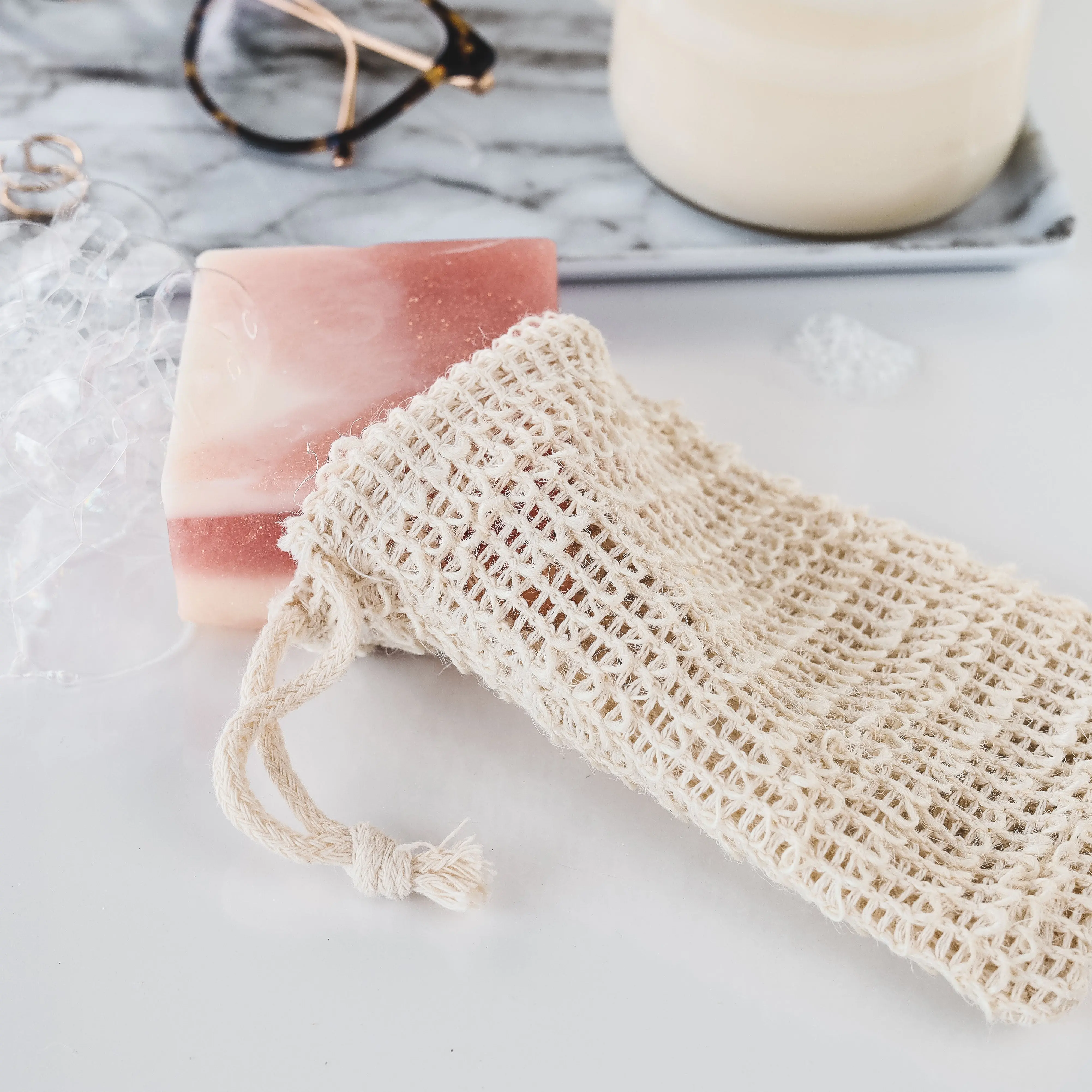 Made from flax, these natural soap bags will make your bar soap suds up in a flash and also help with exfoliation. The drawstring makes it possible to hang your soap to dry to extend its life and keep it off your bathtub.