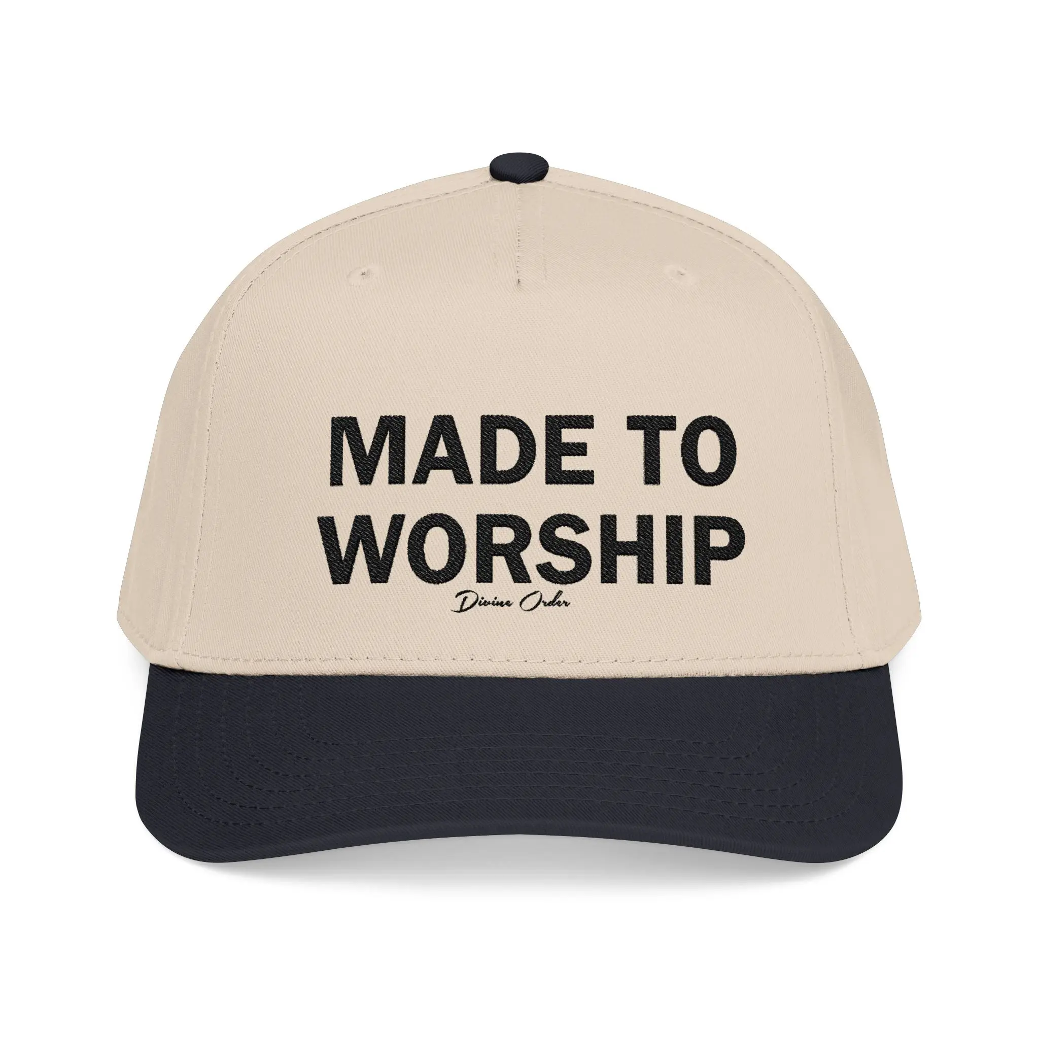 - Structured 5-panel mid-profile silhouette with a seamless front panel