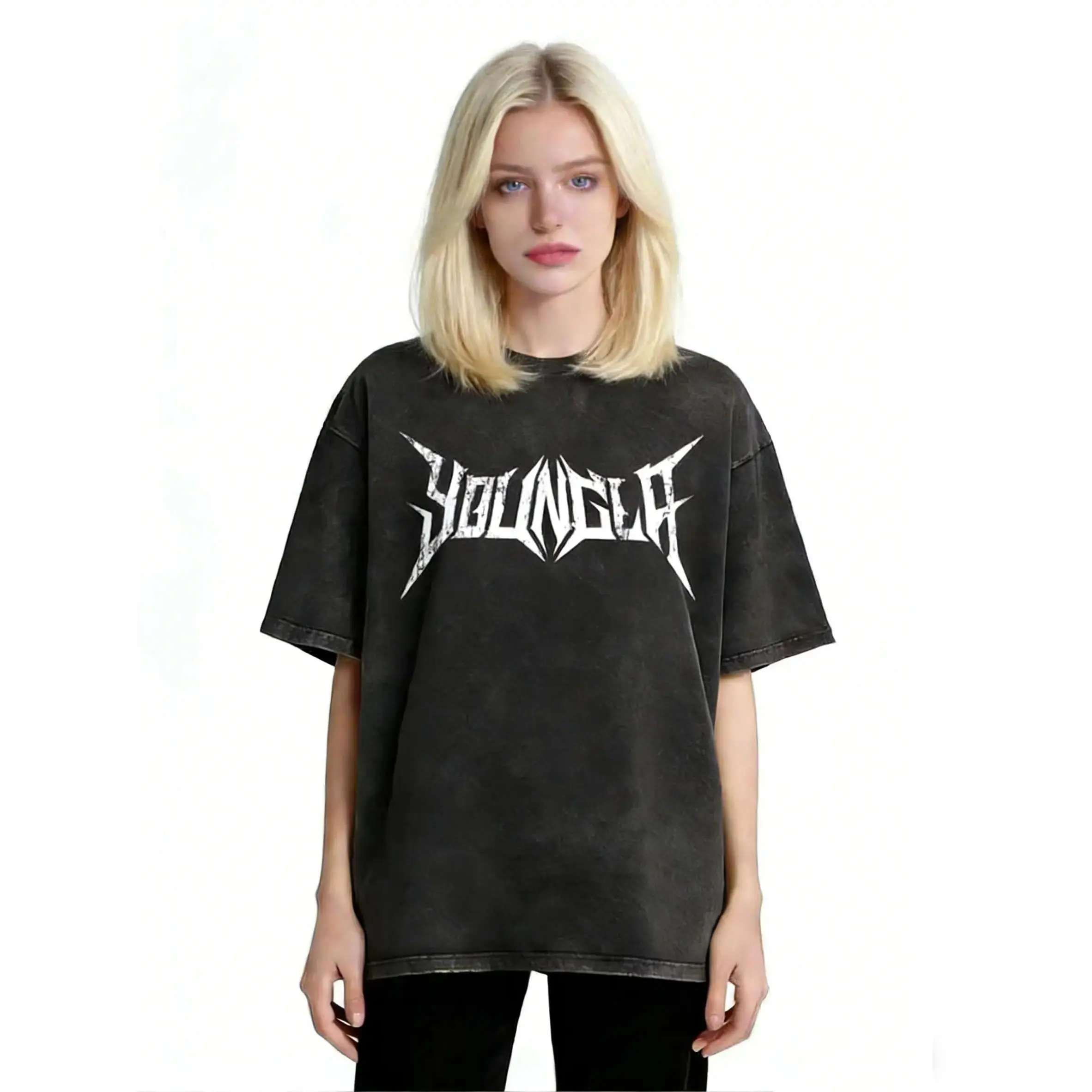 3D Artistry Store Gym Workout Loose Washed Tee Gym Washed Heavyweight Cotton T-shirt Workout Tee Sport Gift Gymnastic Merch Fan Streetwear Washed Tee Men's T Shirts Metalcore Font Distressed Graphic Hardcore Punk Oversized Black