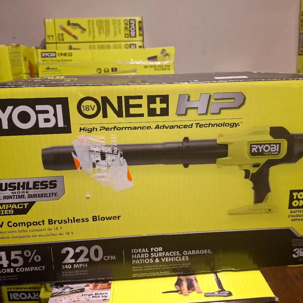 The Ryobi 18V One Plus HP Compact Brushless Blower CPM 220 delivers impressive power with a speed of 140 MPH. This tool is designed for advanced technology users who need a compact yet powerful blower. It's a tool-only model, perfect for those seeking efficiency without bulk.
