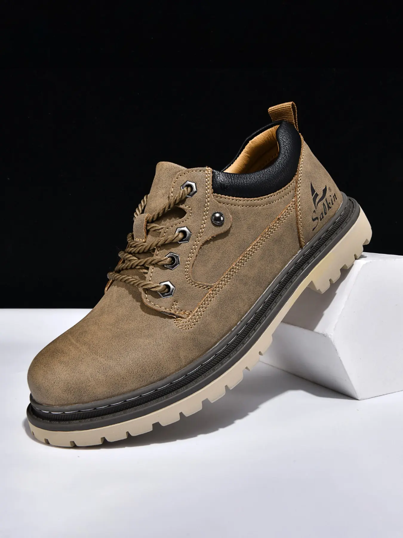 Men's Handmade Casual Boots, Fashionable Lace-Up Low-Top Boots, Suitable for All Seasons Outdoor Hiking and Daily Wear, Thick Sole Comfort