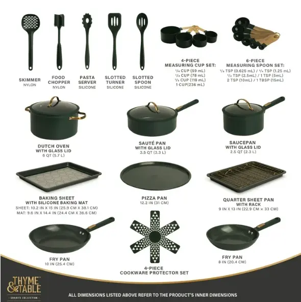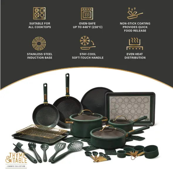 Thyme & Table 32-Piece Aluminum Cookware Set - Green (open box)